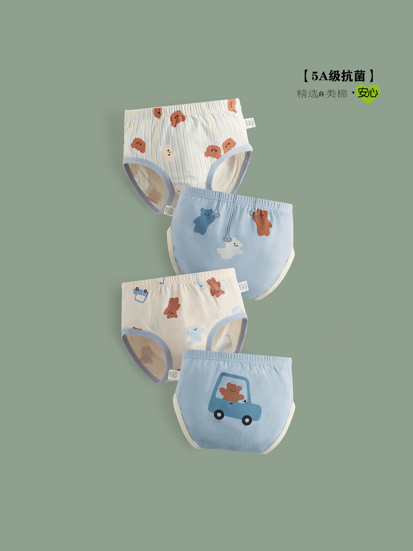 儿童内裤纯棉A类抑菌男童宝宝三角裤全棉男孩中大童短裤不夹屁屁