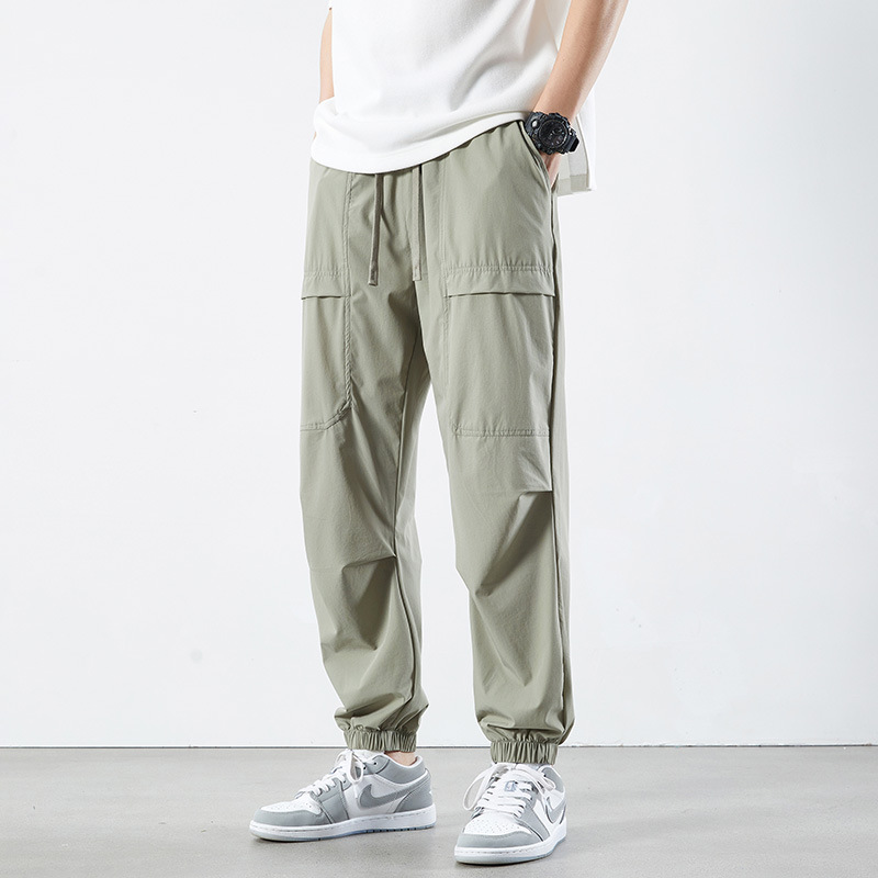 裤子男夏季薄款男士休闲长裤春季潮牌速干男款运动九分裤冰丝男裤