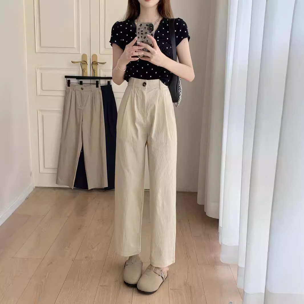 秋自制肌理纹微皱纸感遮胯直筒裤女夏季宽松休闲裤显瘦阔腿裤