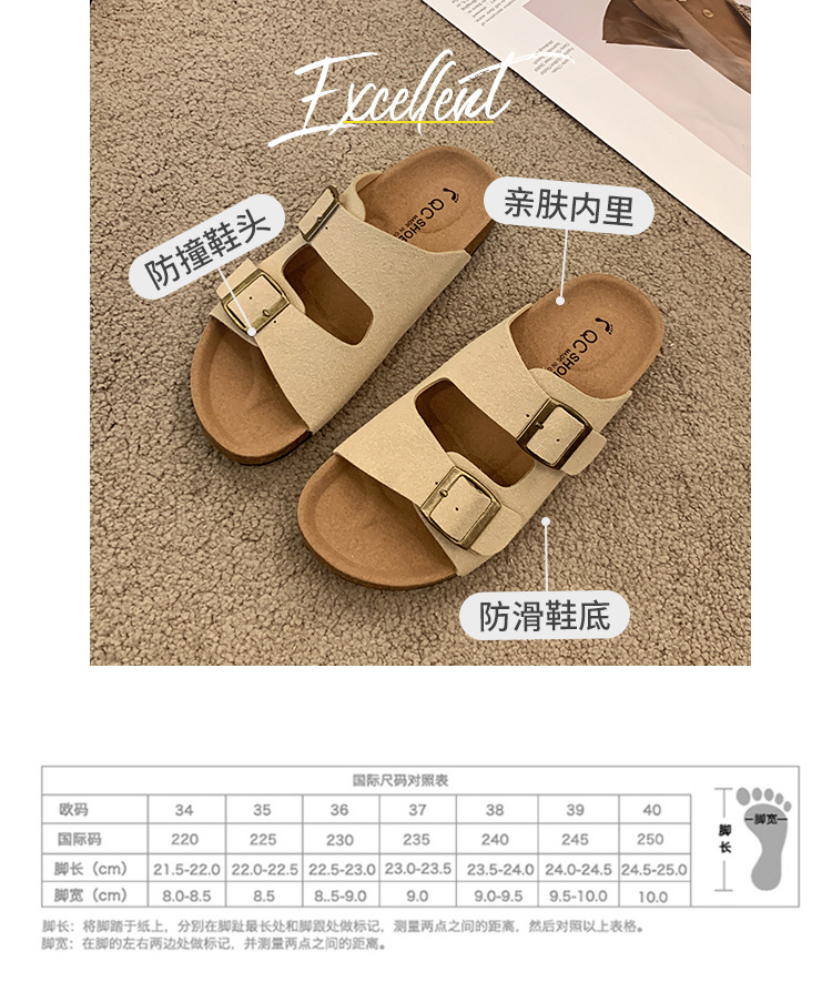 大码勃肯鞋夏季新款平底一字带方扣厚底沙滩勃肯鞋大码凉拖鞋