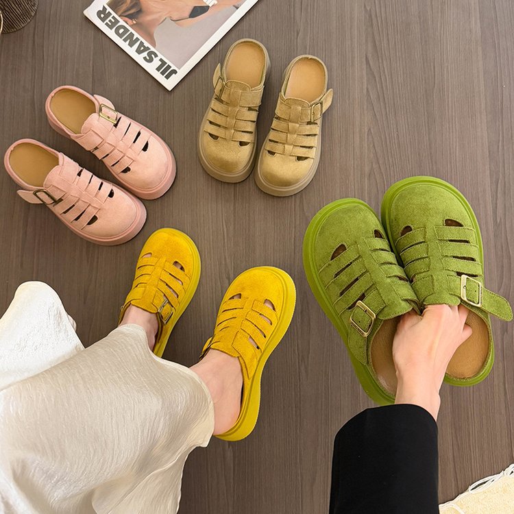 厚底增高博肯鞋包头半拖鞋女夏季外穿2025新款一脚蹬小个子凉拖鞋