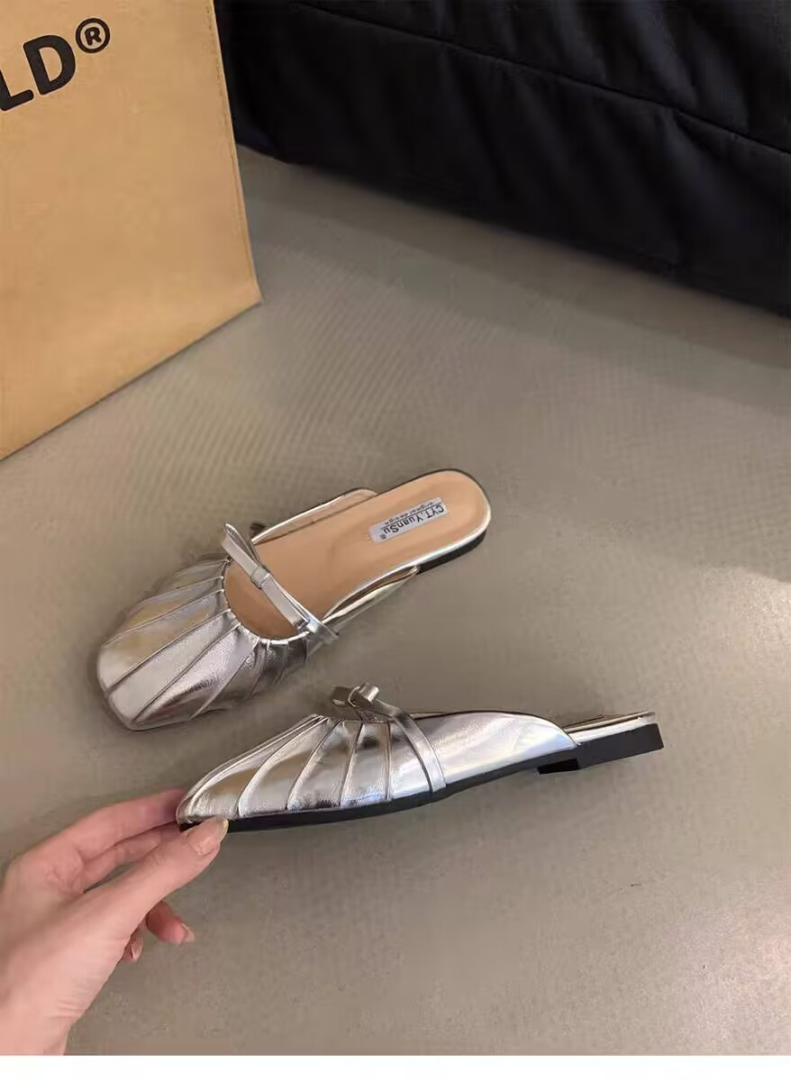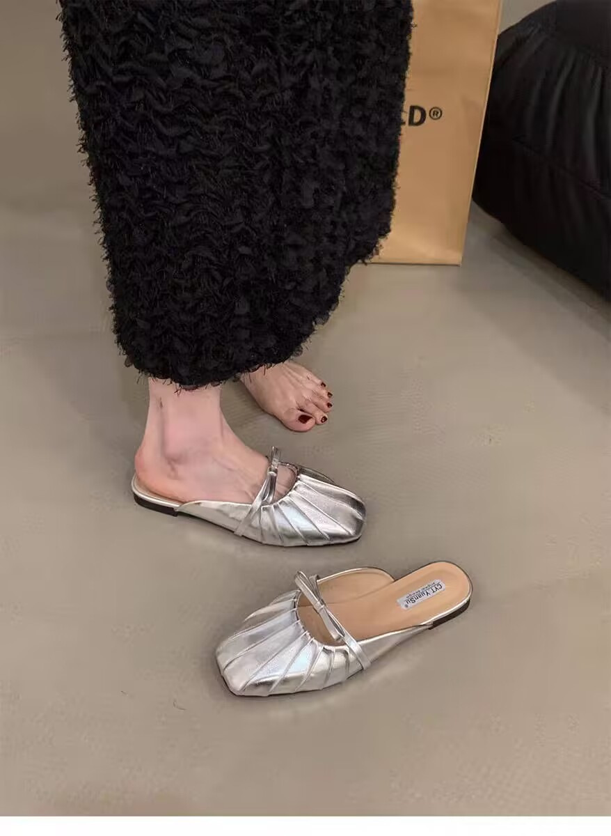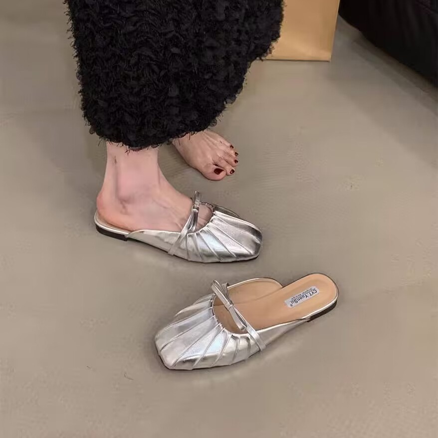 法式晚风拖鞋女夏季外穿新款配裙子仙女风凉拖银色包头穆勒鞋