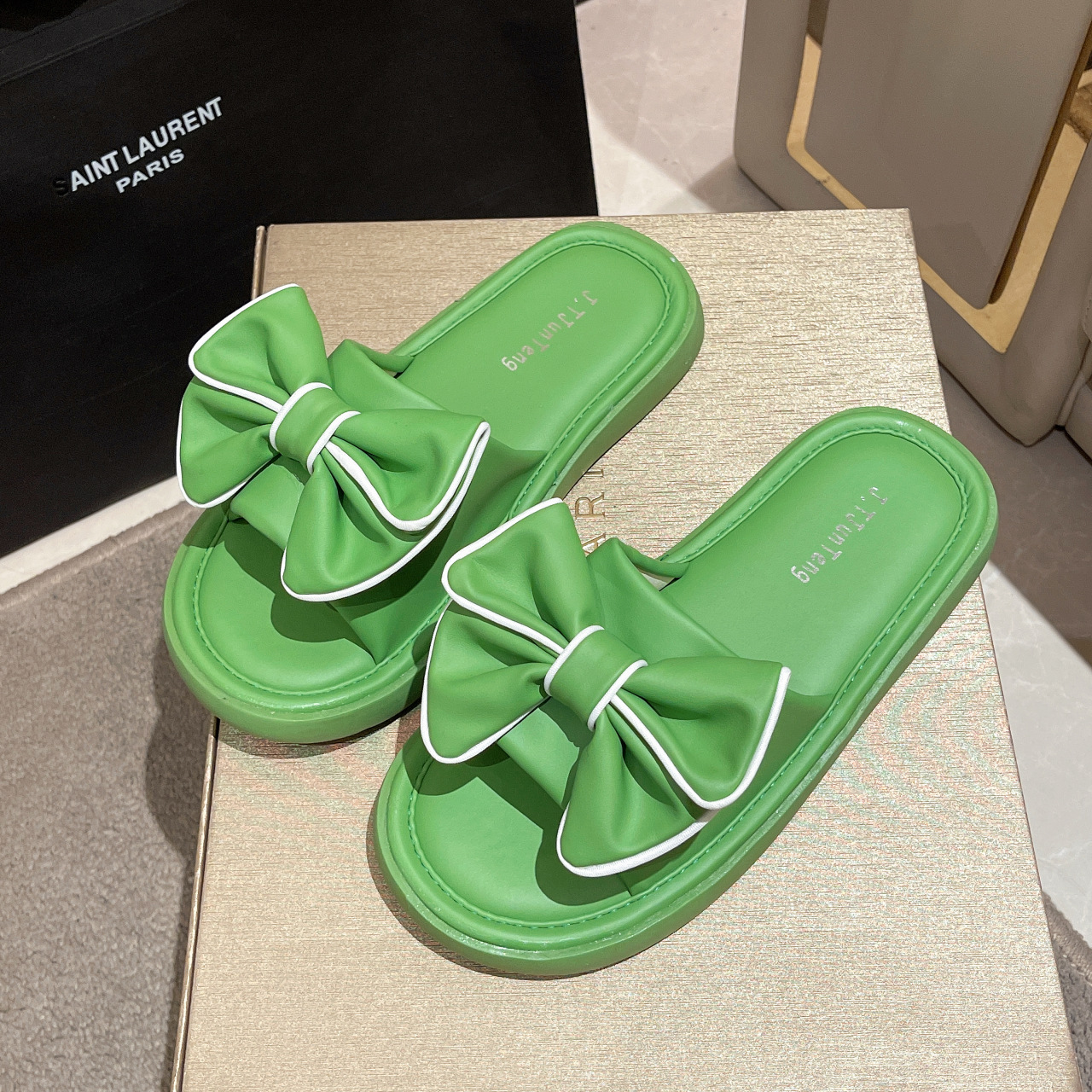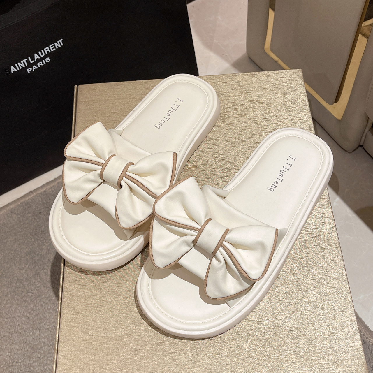 厚底拖鞋女夏季外穿时尚仙女风一字沙滩鞋网红蝴蝶结外穿凉拖