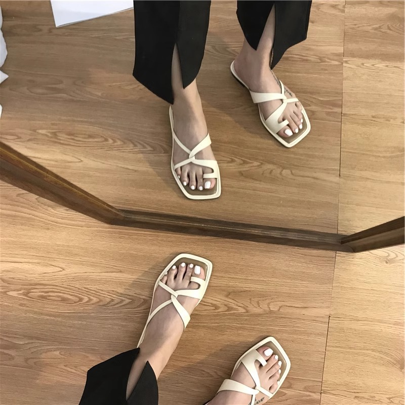 罗马风套趾拖鞋外穿夏新款韩版chic一字拖鞋防滑沙滩度假凉拖