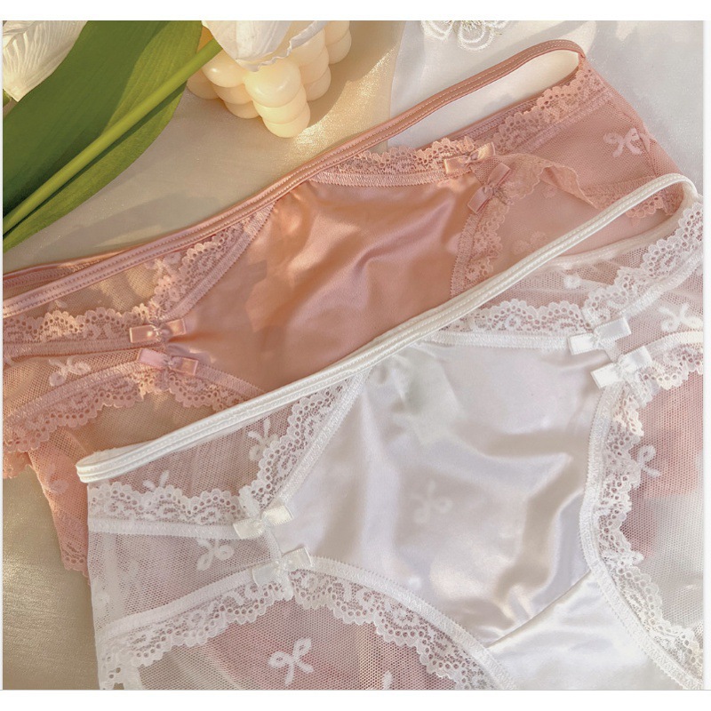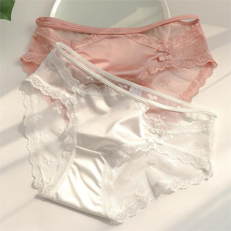 爆款纯欲镂空蕾丝法式缎面内裤女纯棉裆透气舒适性感少女三角裤头