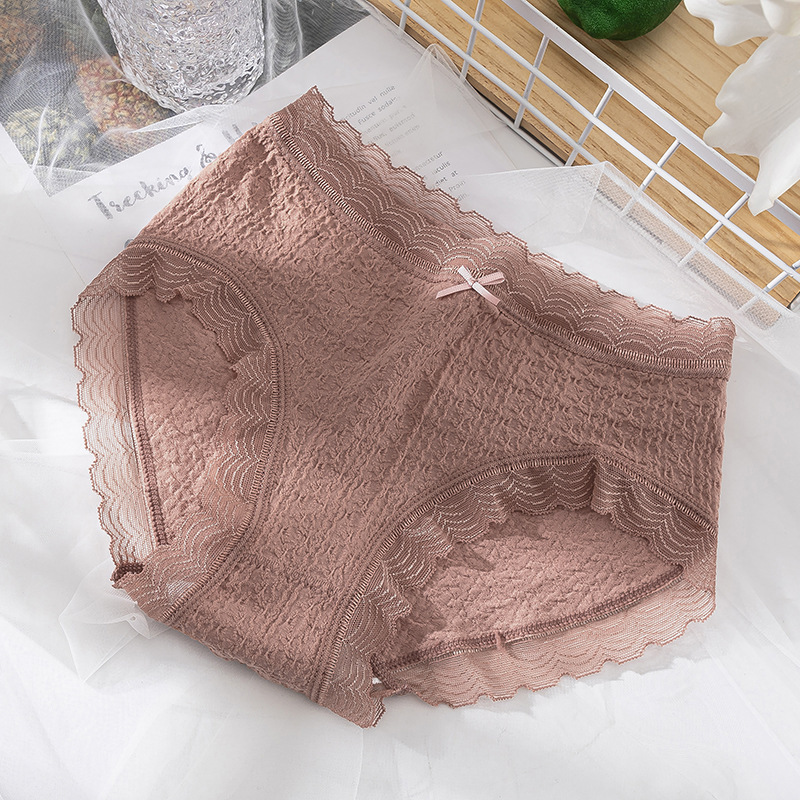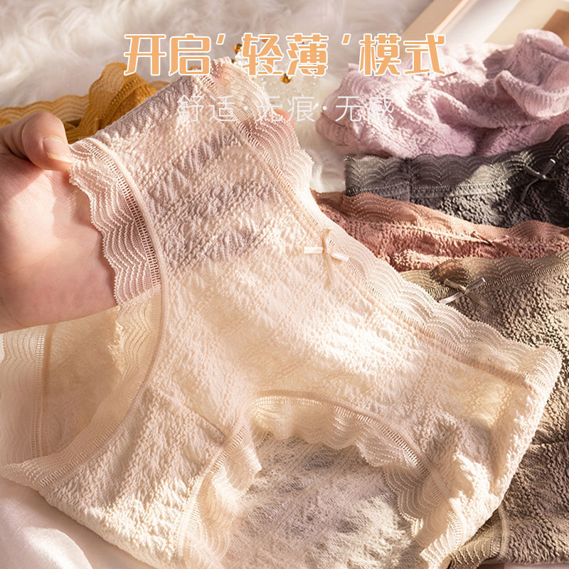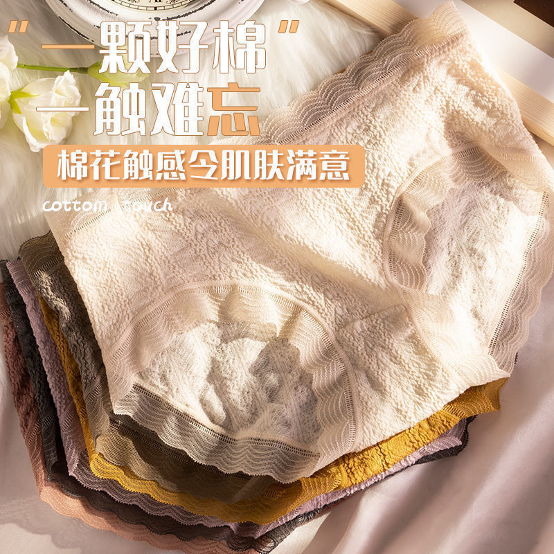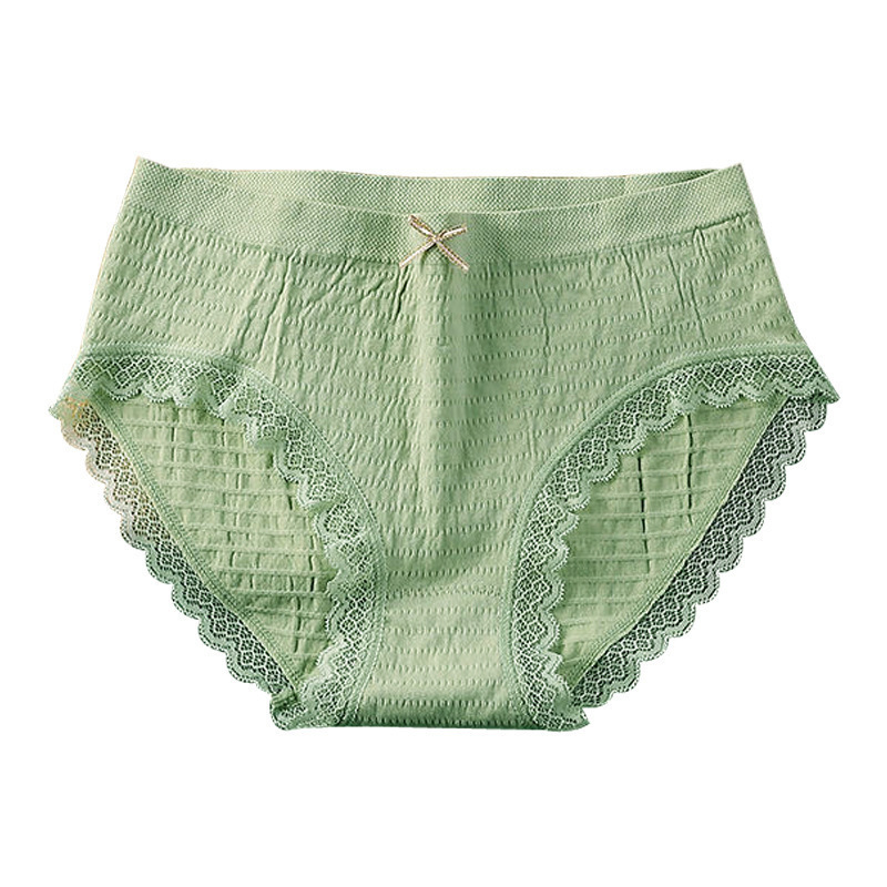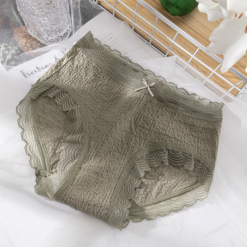 爆款日系少女泡芙蕾丝内裤无痕纯棉底档透气中腰提臀女士三角内裤