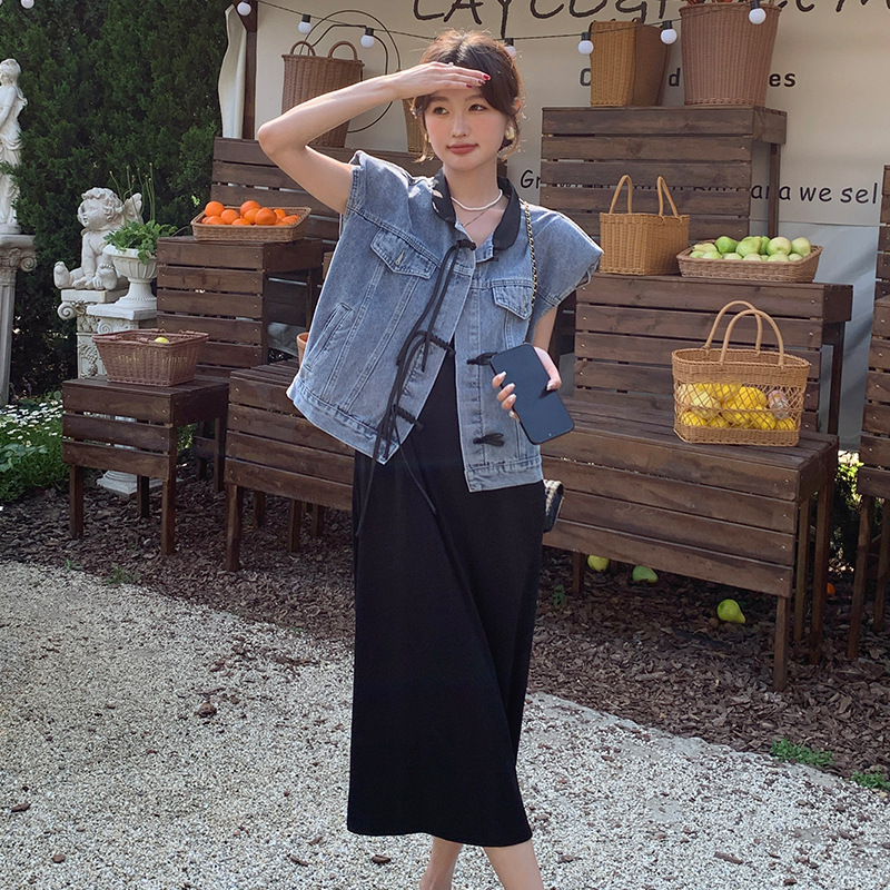 新款纯色连衣裙牛仔马甲两件套夏今年流行时尚好看漂亮套装