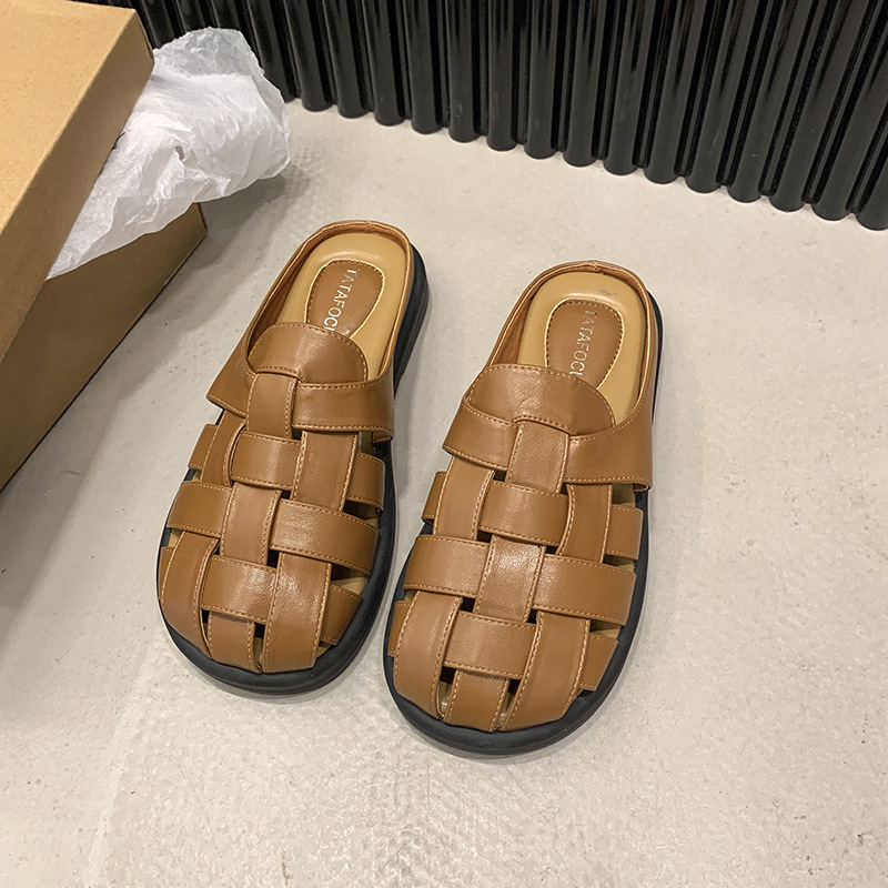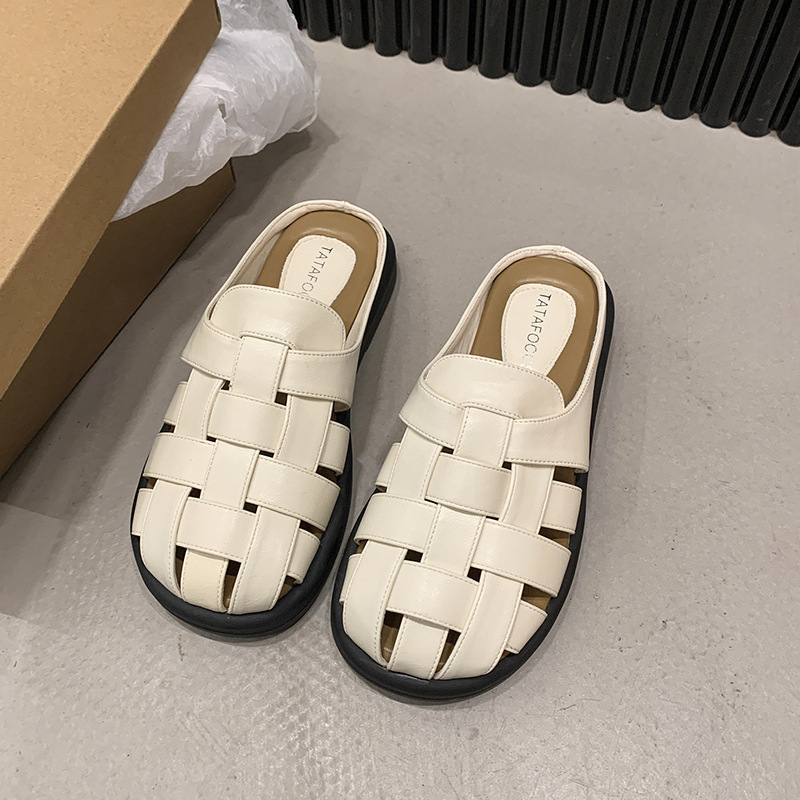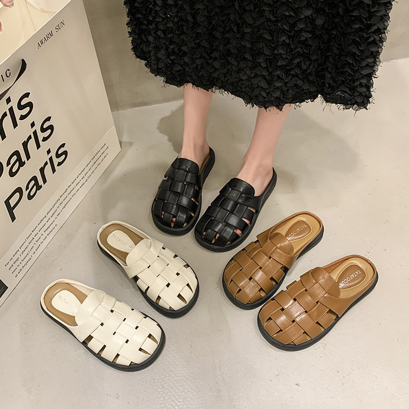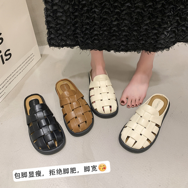 罗马凉拖女春夏季外穿复古厚底法式包头半拖平底软底洞洞拖鞋