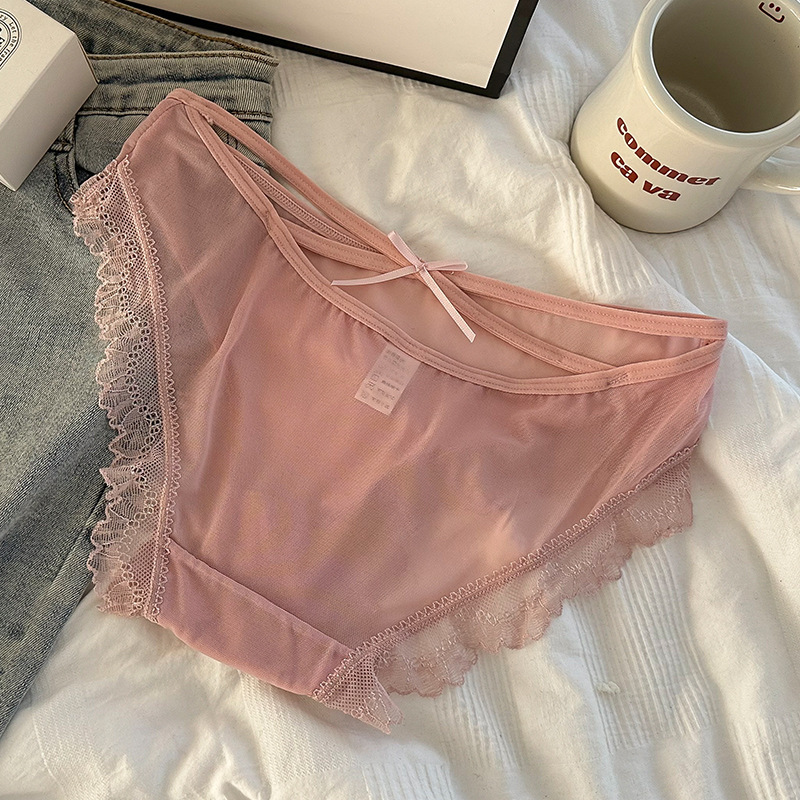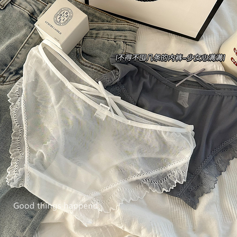爆款纯欲内裤女纯棉档蕾丝细带性感镂空蝴蝶结低腰少女三角裤