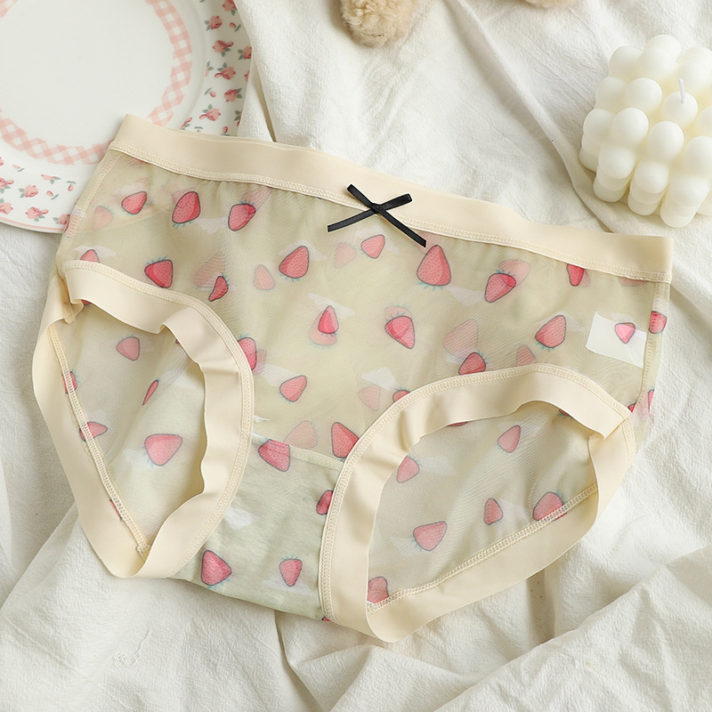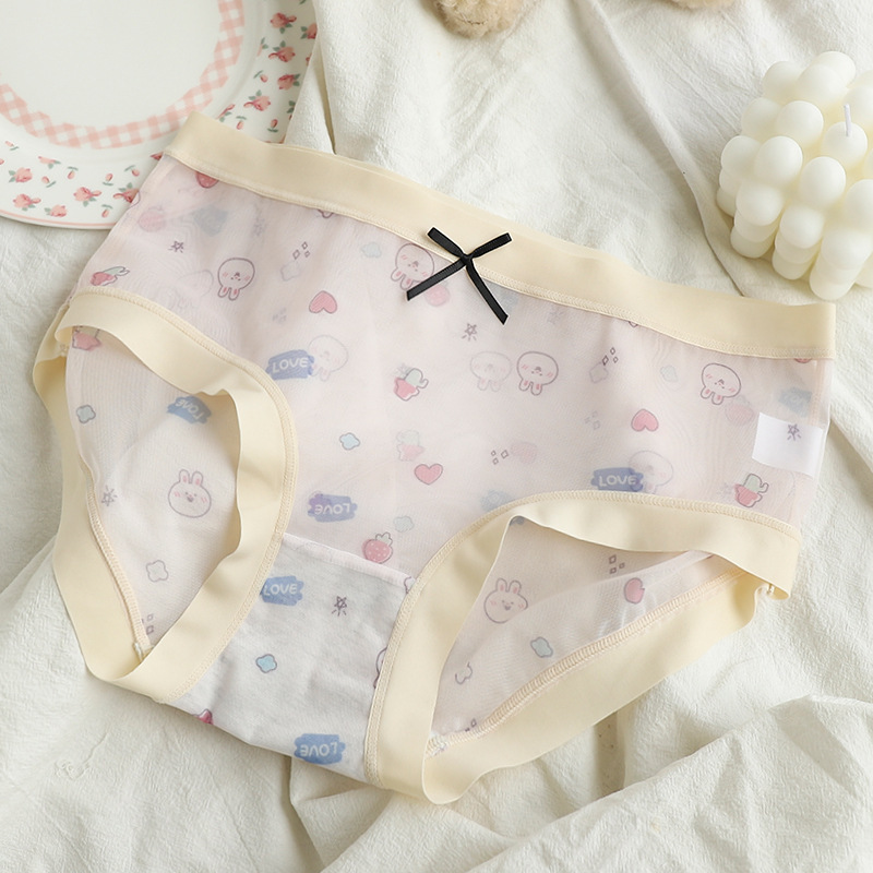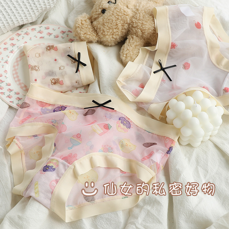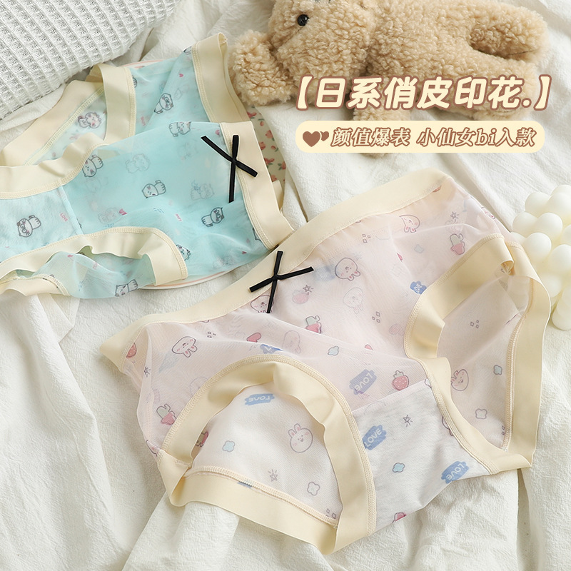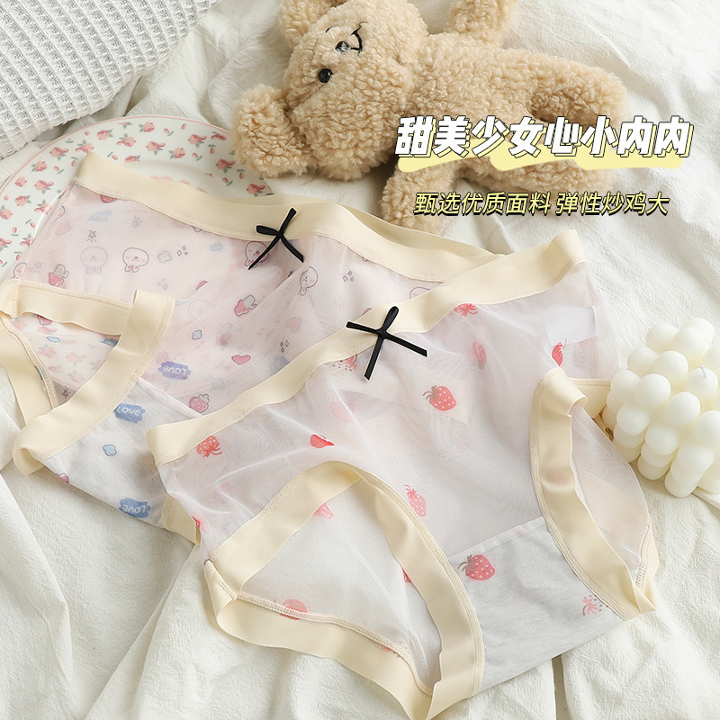 爆款可爱纯欲网纱速干内裤纯棉裆卡通印花中腰少女三角裤