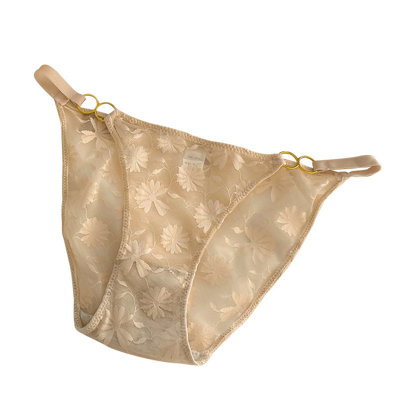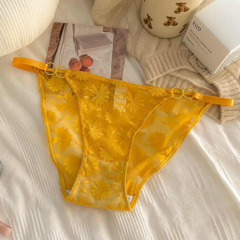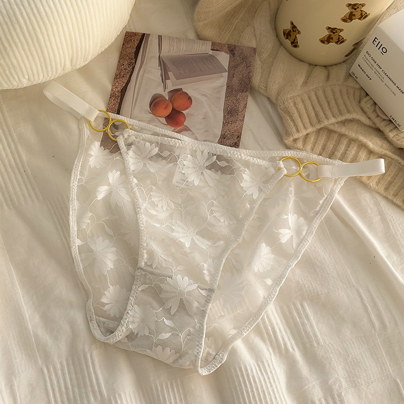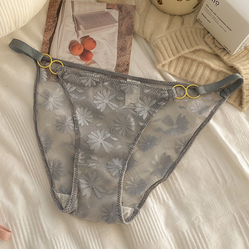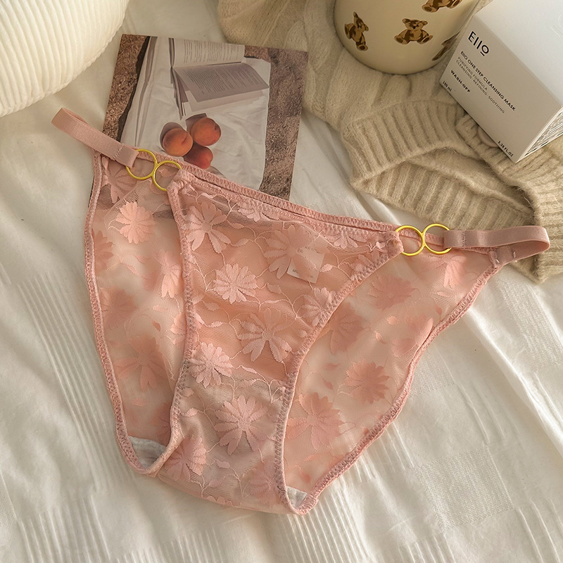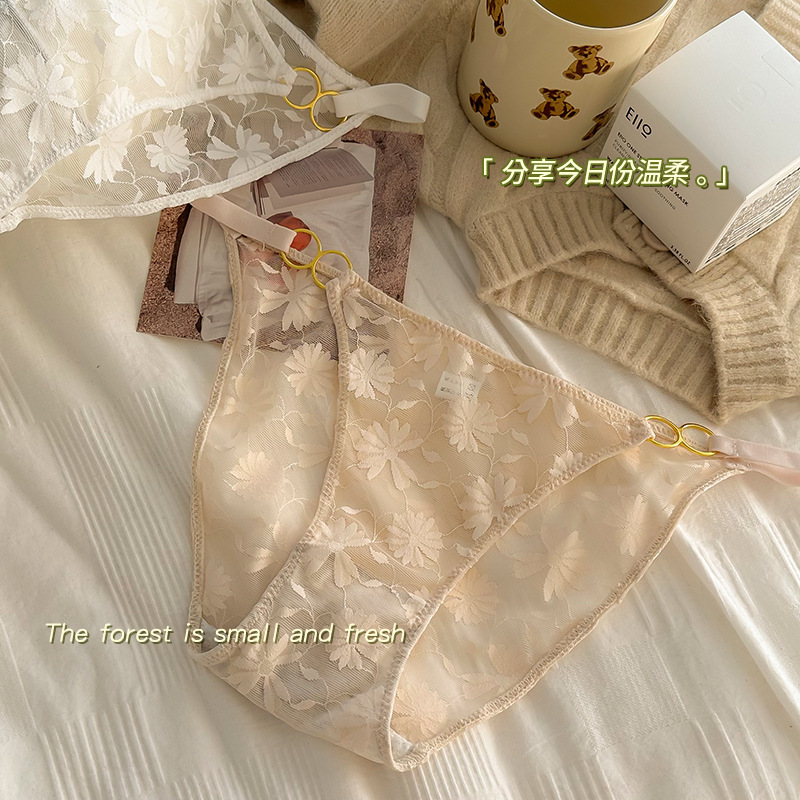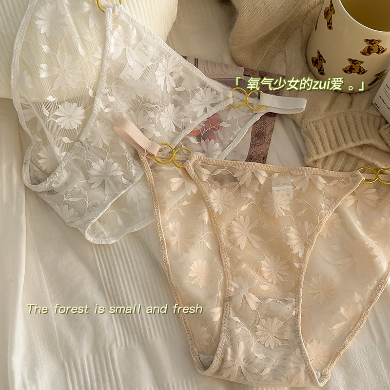 欧美风性感细带少女蕾丝网纱提花纯棉裆内裤女夏季中腰女士三角裤