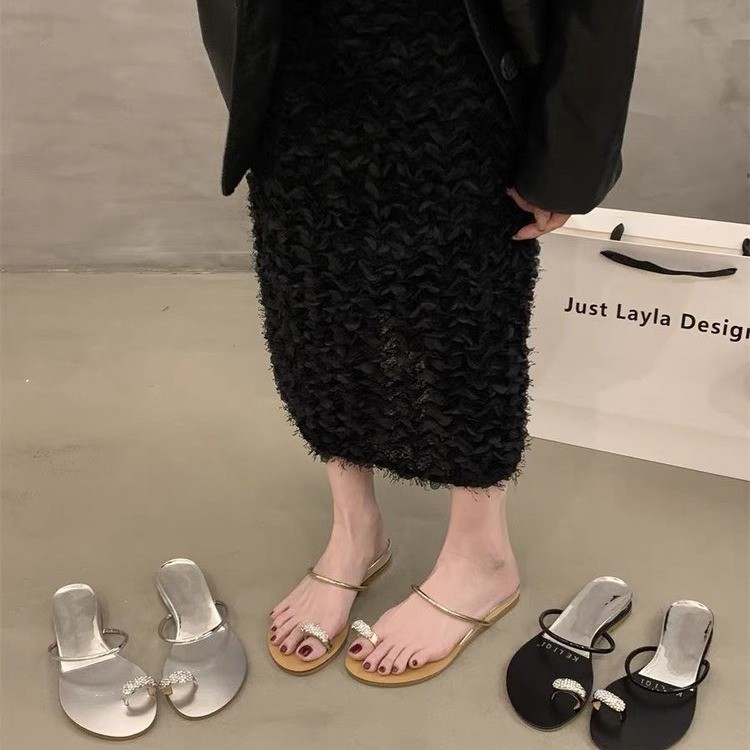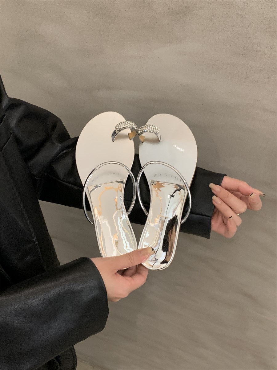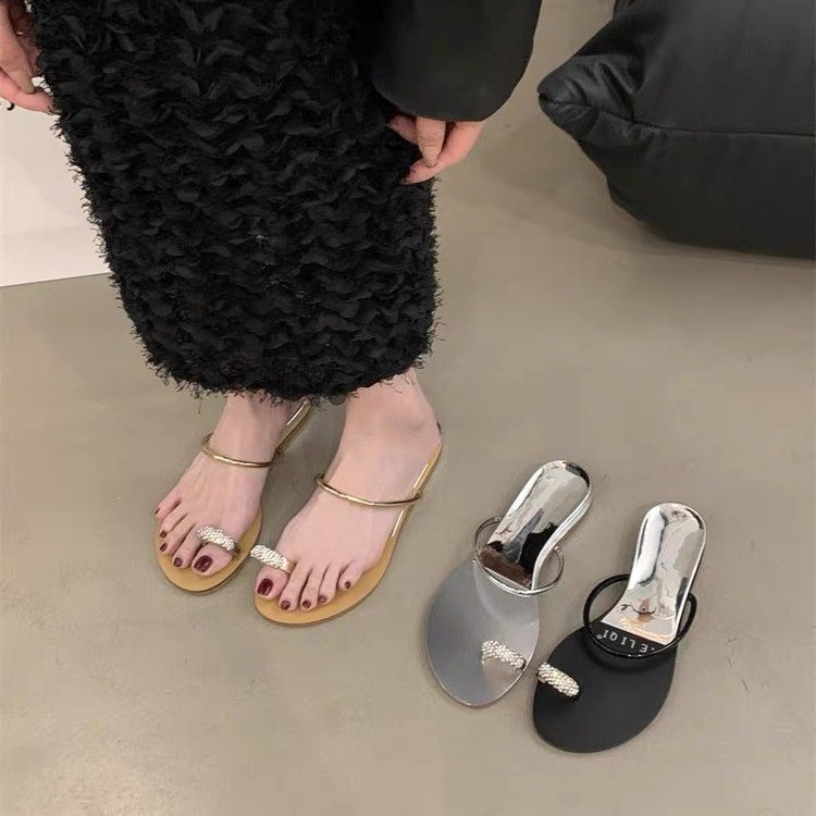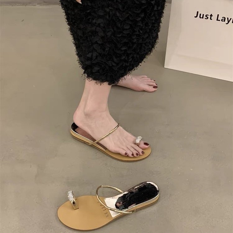 套趾一拖鞋女外穿夏季仙女水钻绝美时尚凉鞋一字平底法式凉拖