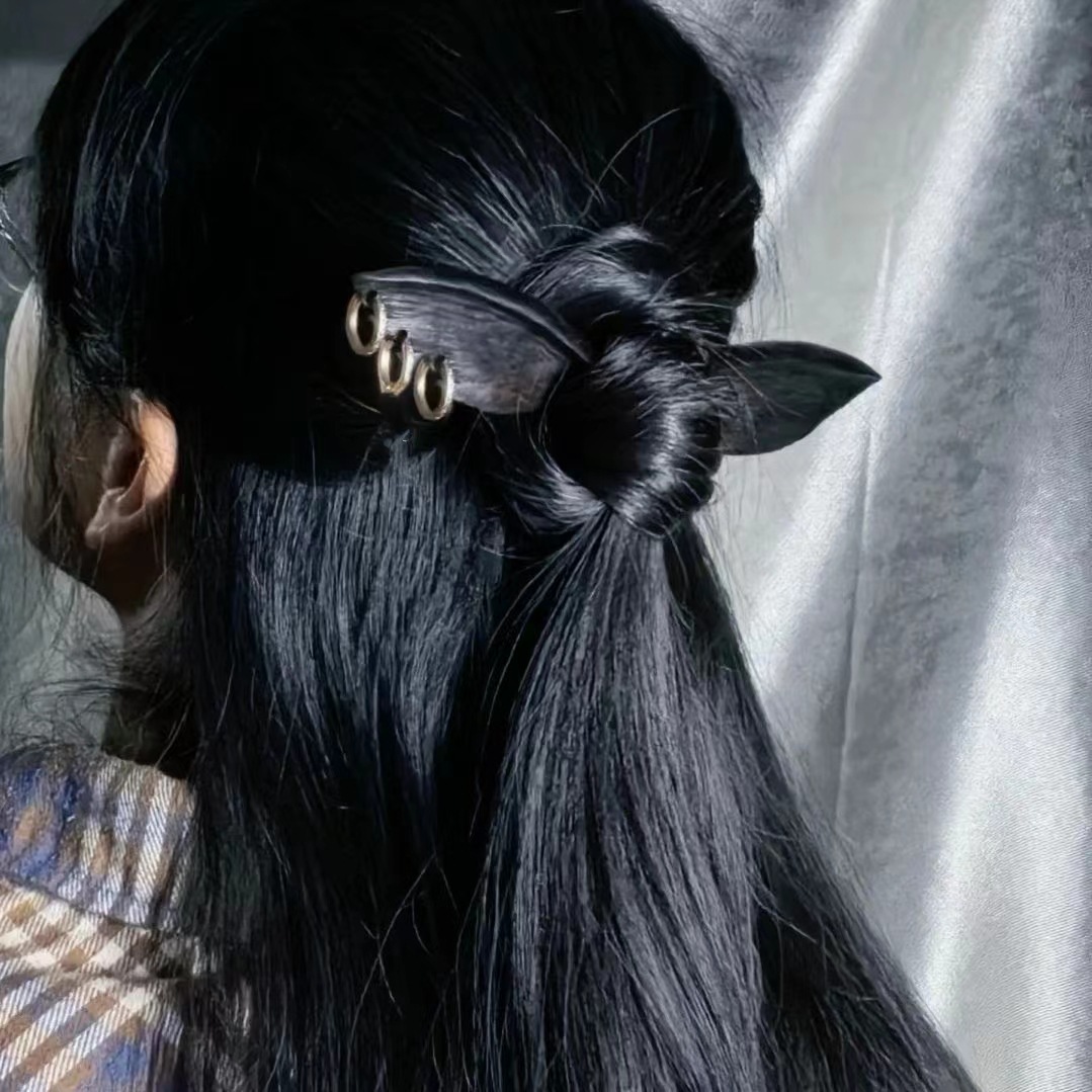 新中式狐耳双尖檀木发簪小众设计古风旗袍马面裙日常简约簪子