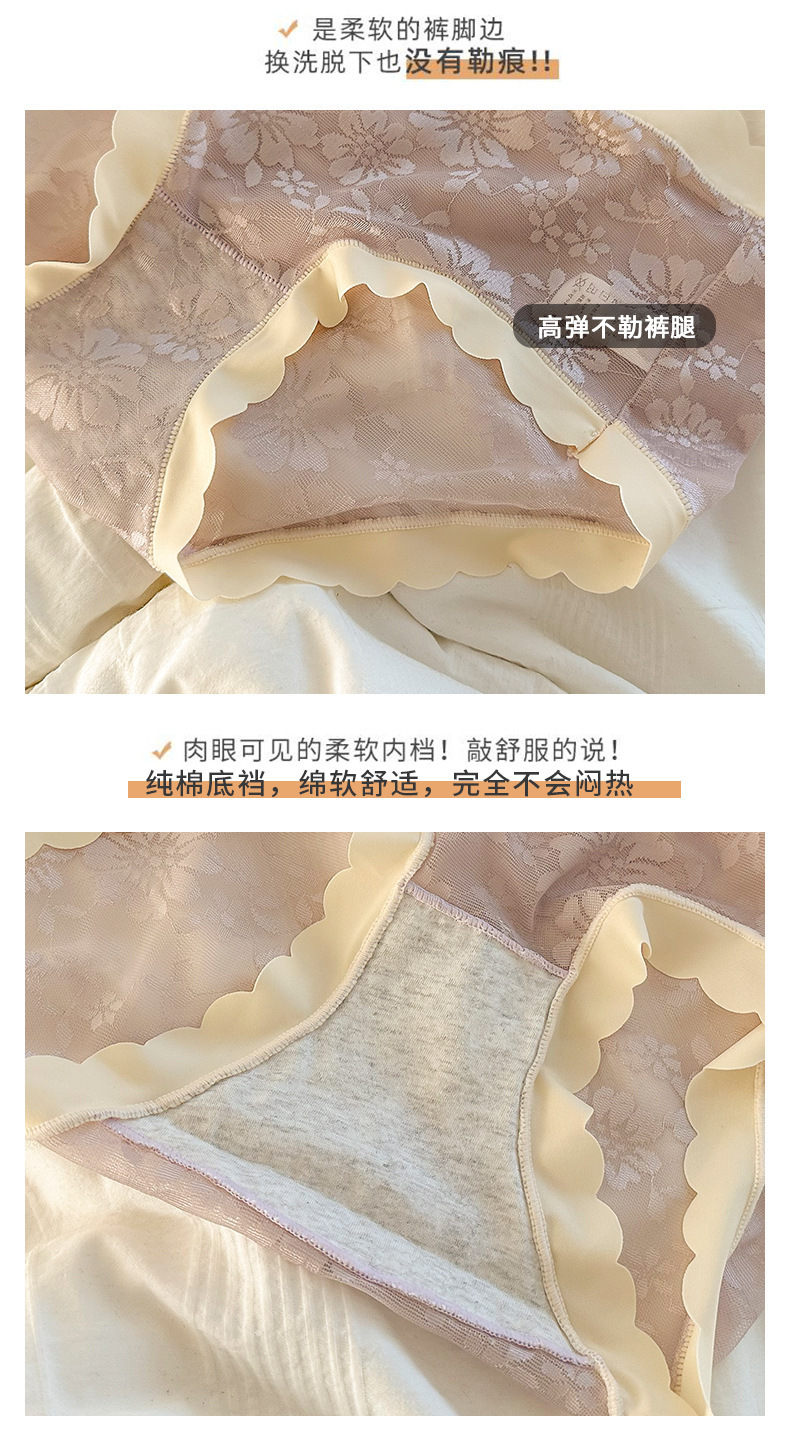 爆款纯欲蕾丝内裤女纯棉抗菌裆性感日系透气中腰提臀女生三角裤头