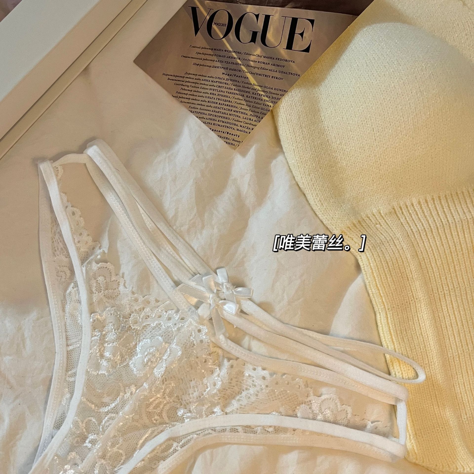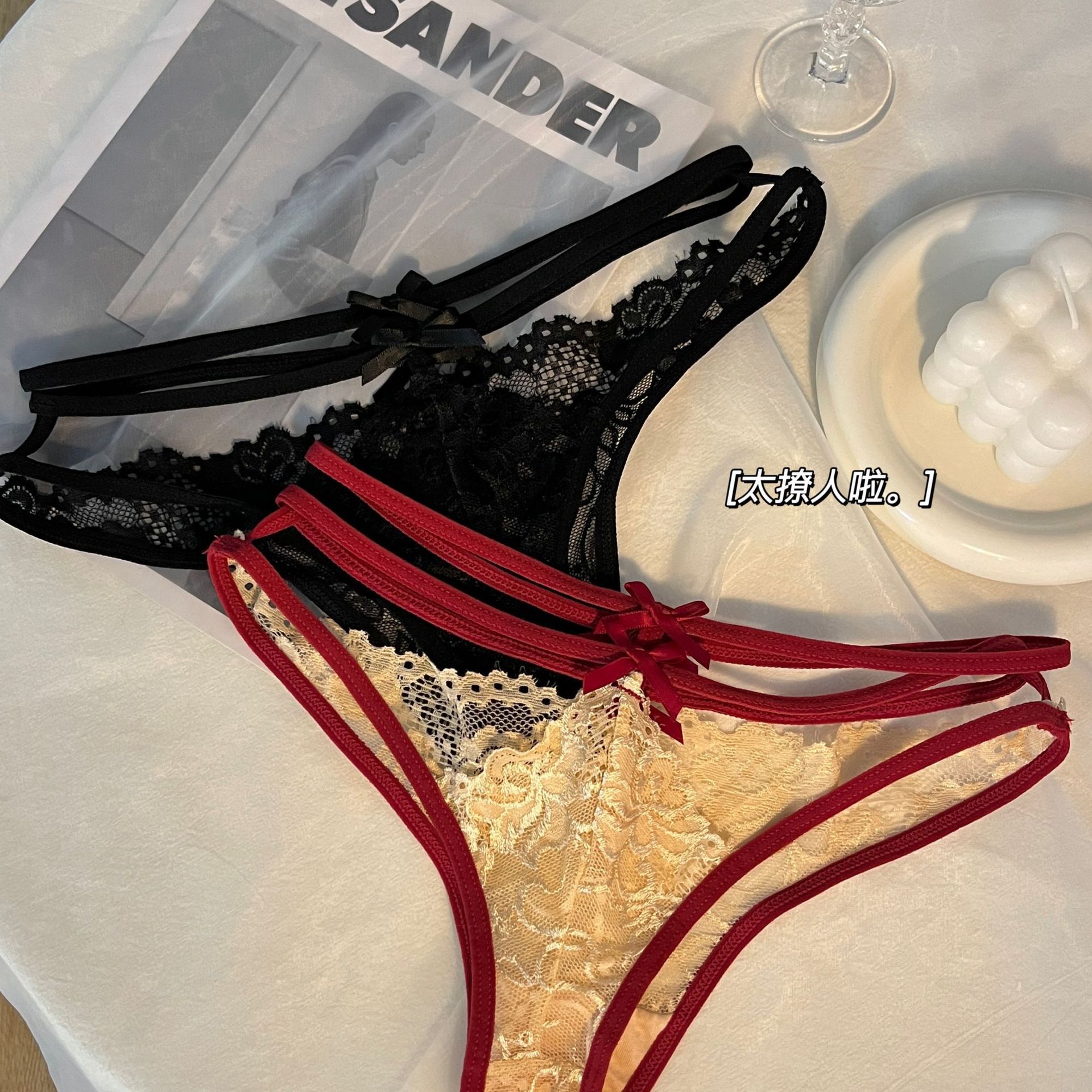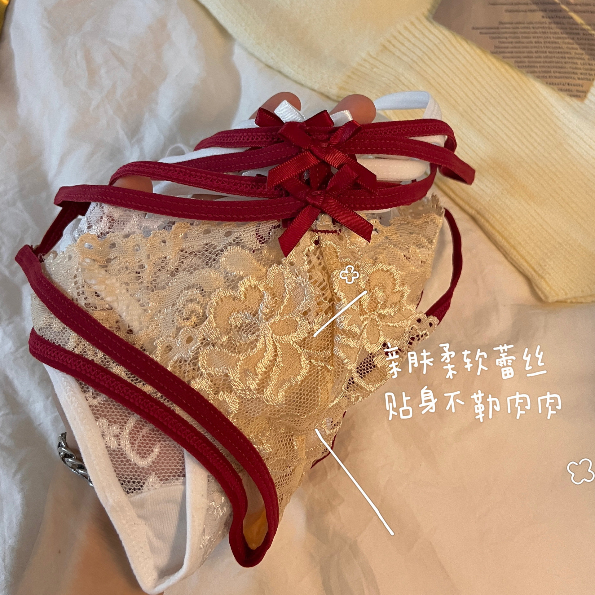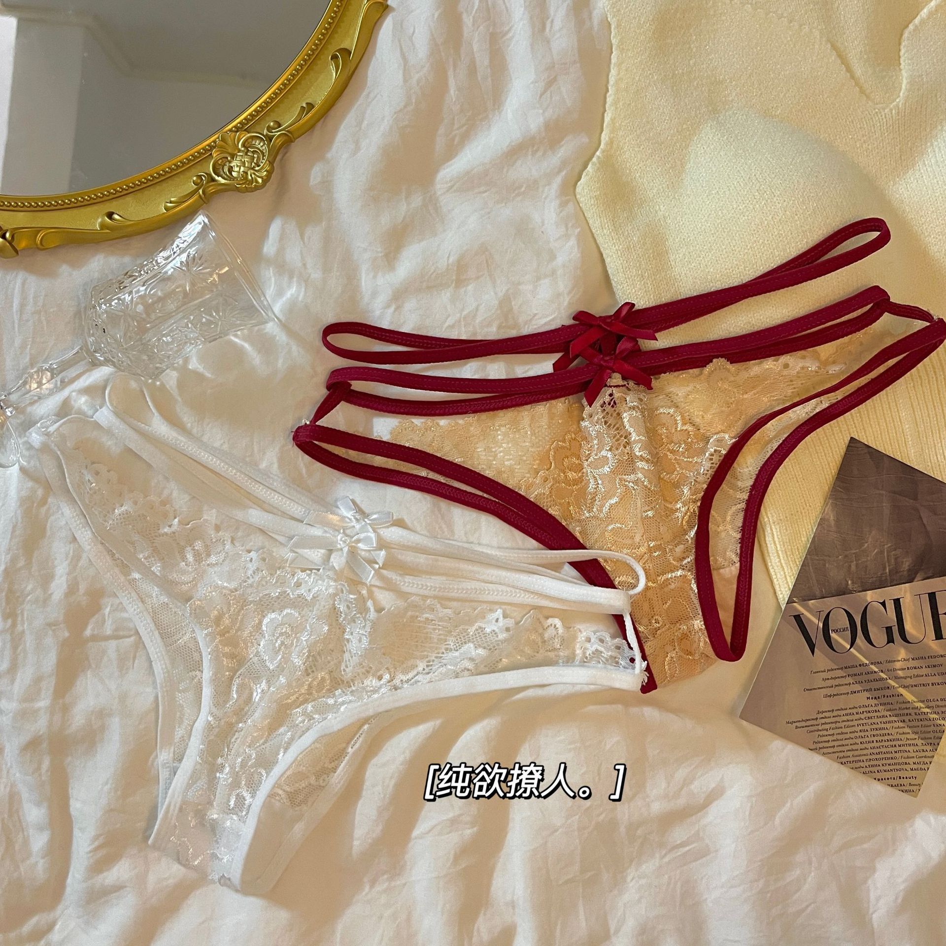 跨境纯欲少女蕾丝内裤女性感细带低腰镂空纯棉裆诱惑蝴蝶结三角裤