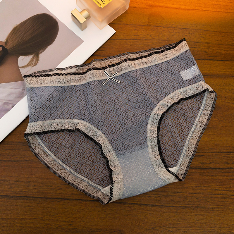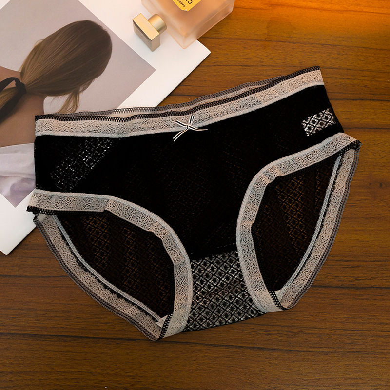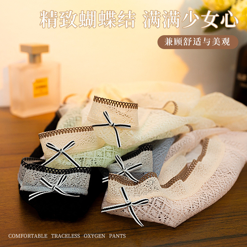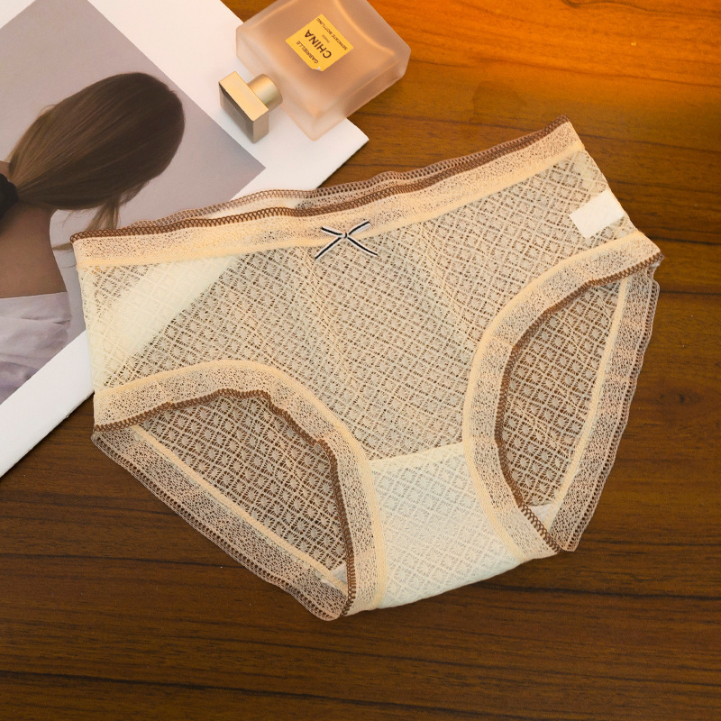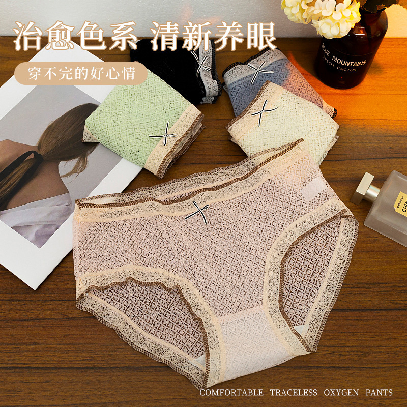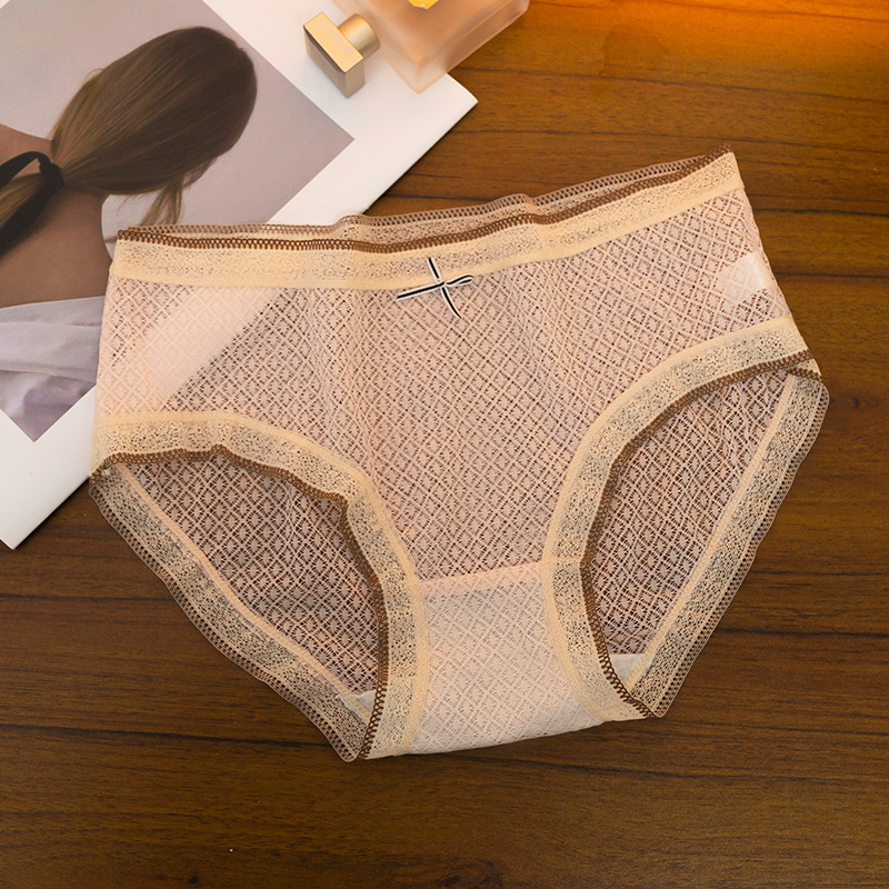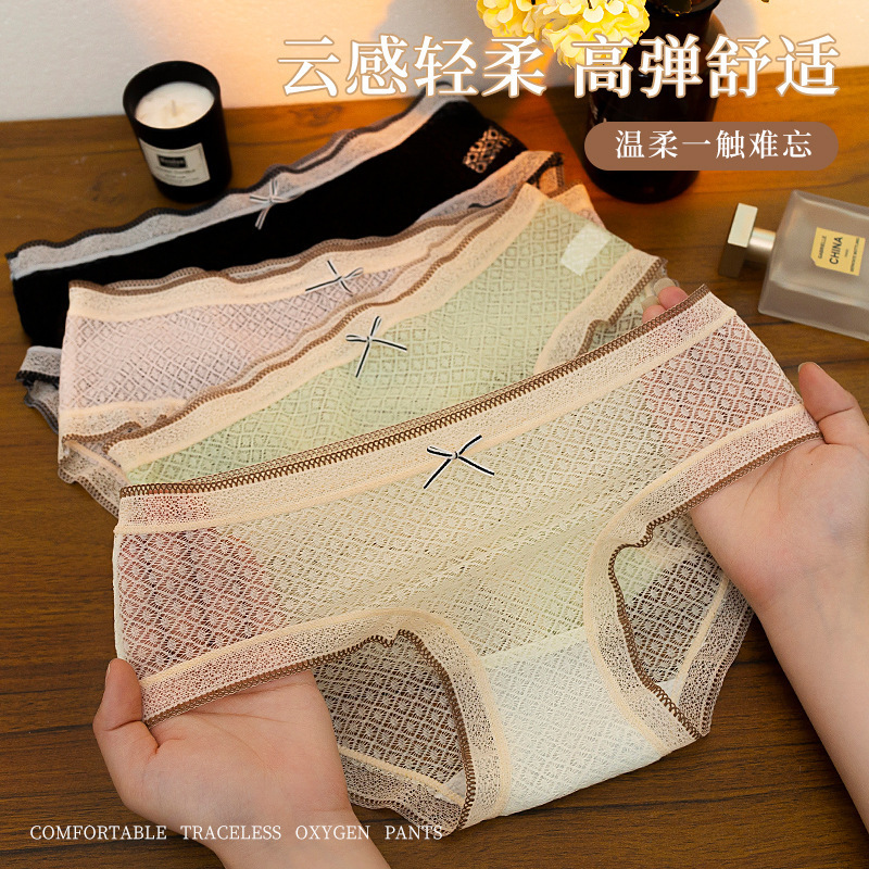 女士轻薄无痕高弹力奶油色系蕾丝性感透气舒适吸湿纯棉底裆三角裤