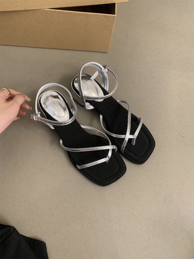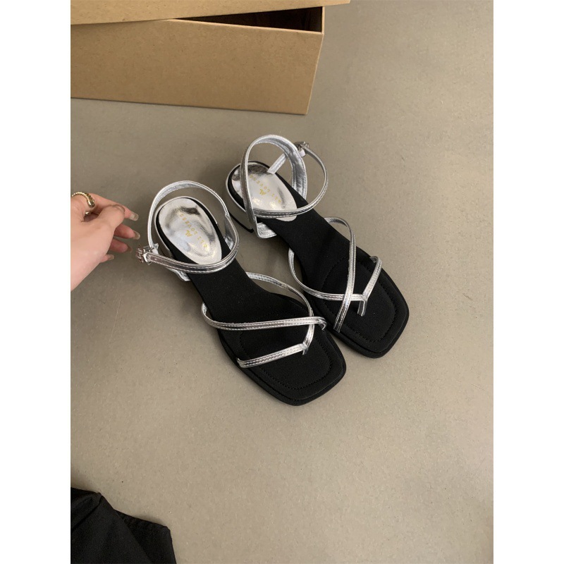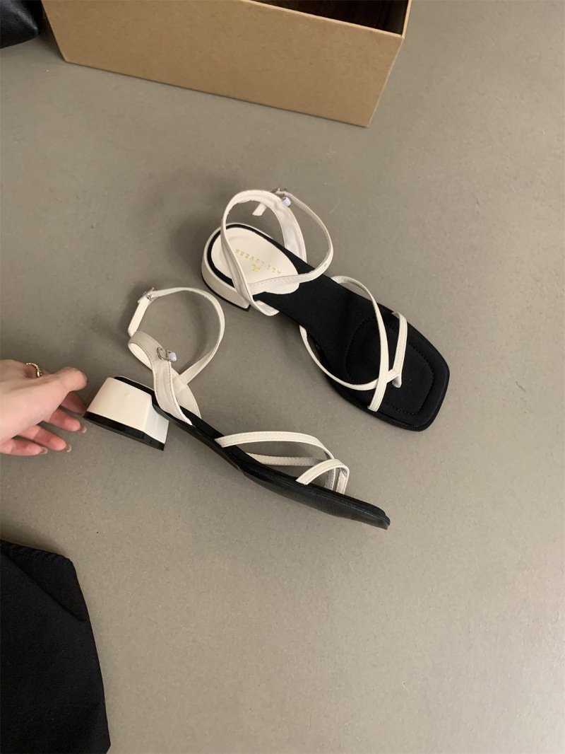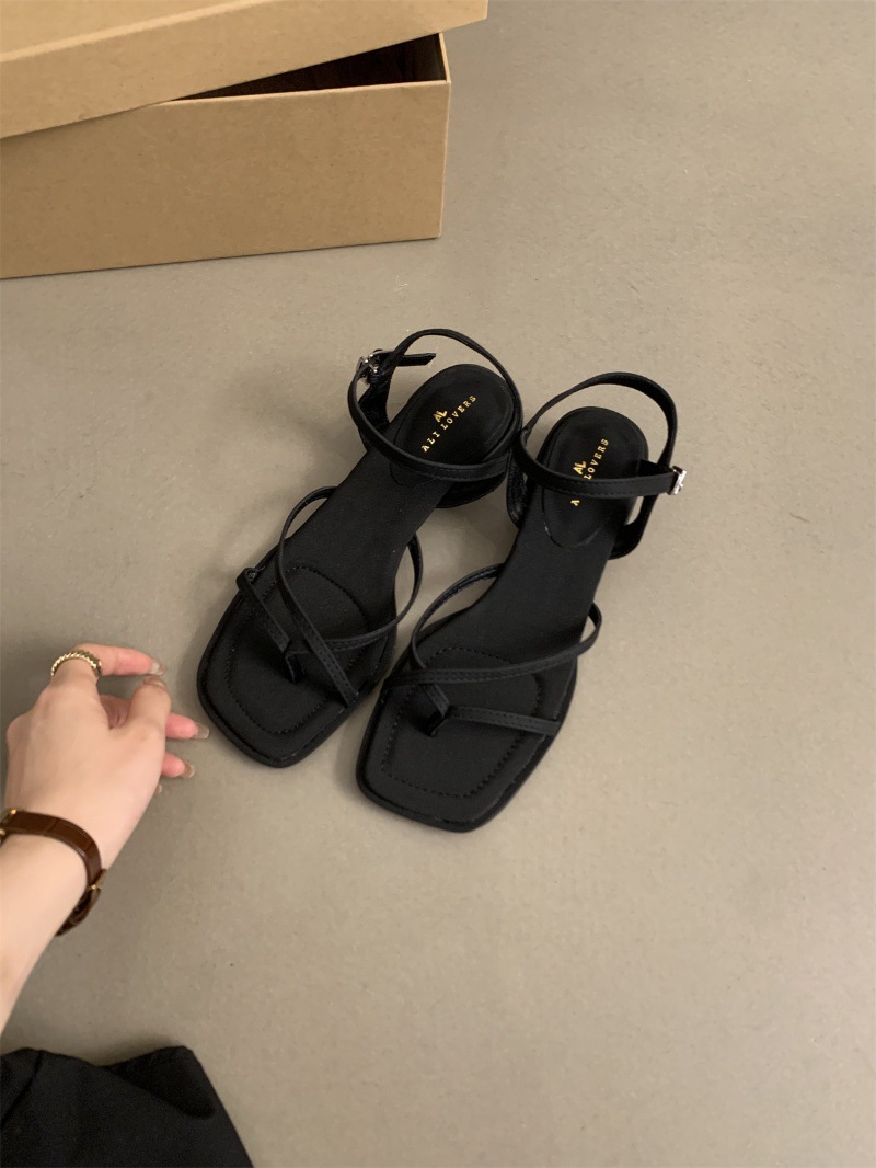粗跟凉鞋女夏季外穿新款百搭法式气质仙女风中跟配裙子女士晚晚鞋