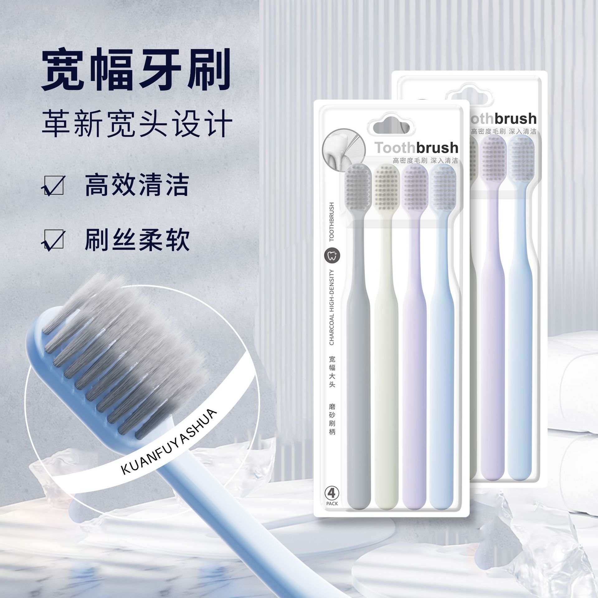 【4支装】成人宽头软毛牙刷组合家庭装便携