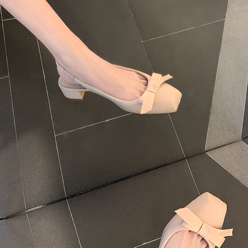 法式猪鼻子粗跟凉鞋女夏新款蝴蝶结芭蕾舞鞋一字带包头鞋