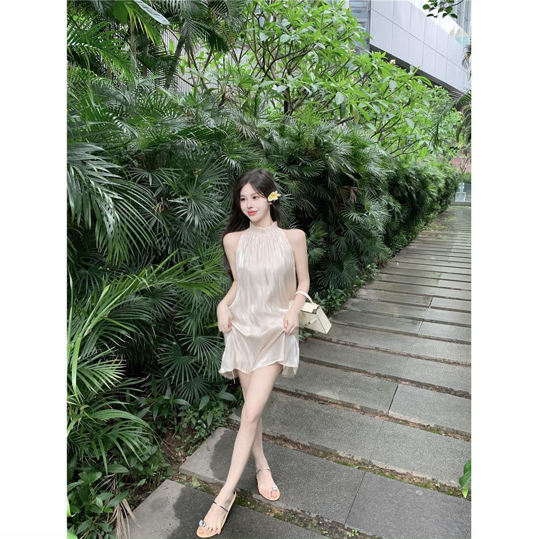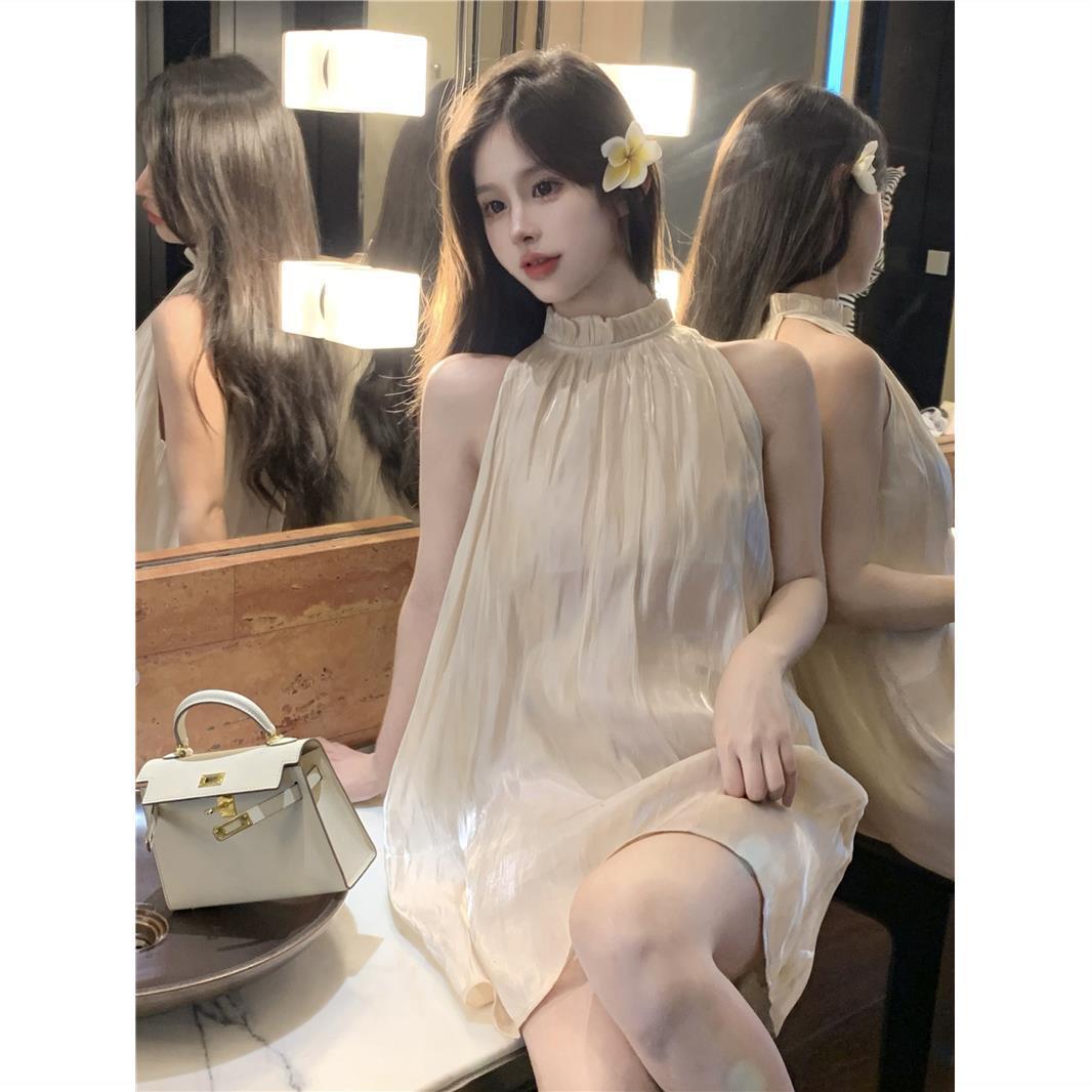 纯欲高级感挂脖连衣裙女装夏季法式甜辣妹宽松气质无袖a字短裙子