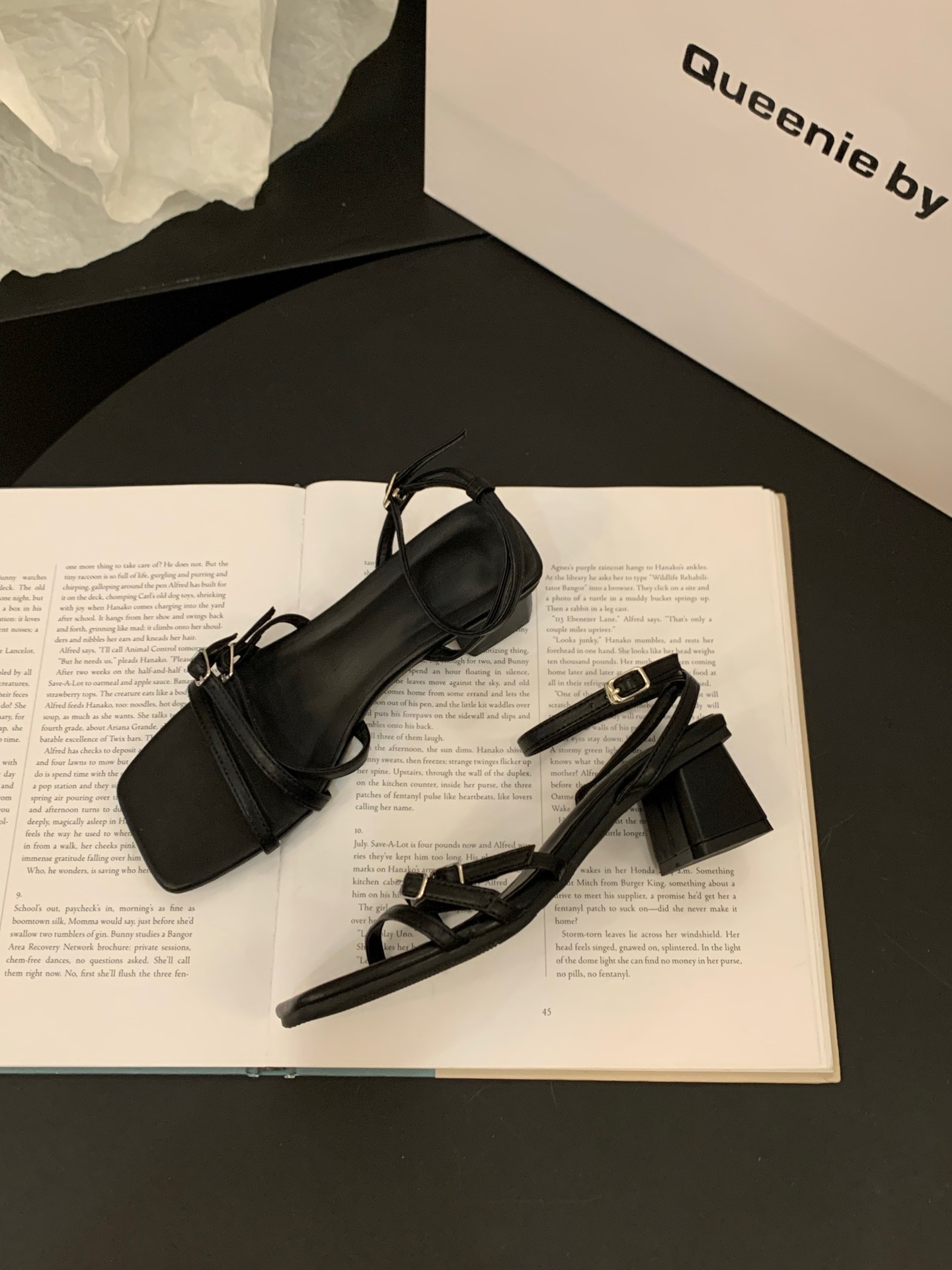 夏季新款时尚凉鞋女高跟粗跟时尚百搭一字扣方头中跟女凉鞋