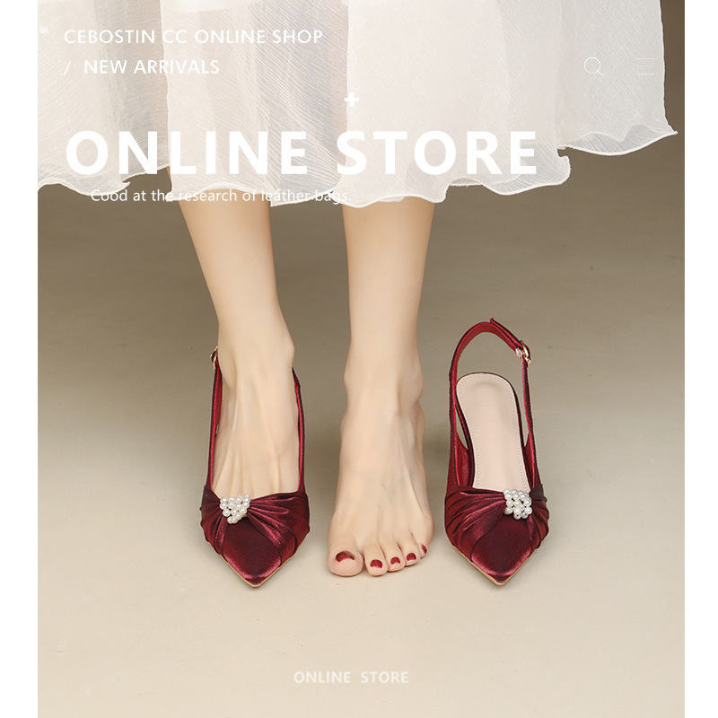法式小跟单鞋凉鞋女夏仙女风配裙中跟尖头包头白色细跟高跟鞋
