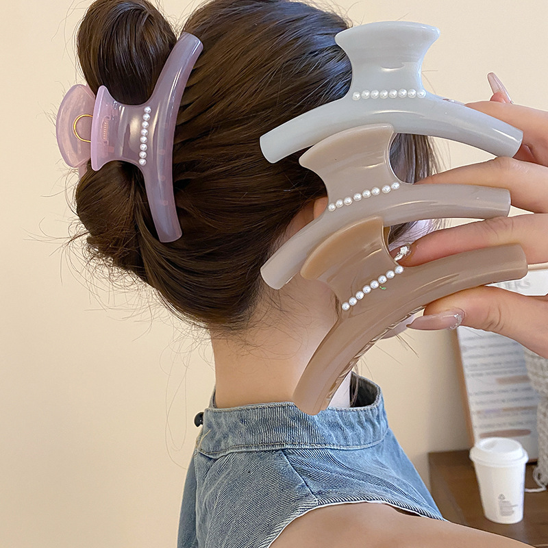 高级感亚克力珍珠发夹韩系ins简约气质盘发鲨鱼夹小众设计感发饰