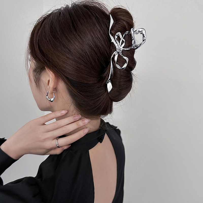冷淡风液态蝴蝶结金属发夹女夏新款盘发抓夹气质鲨鱼夹子头饰发卡