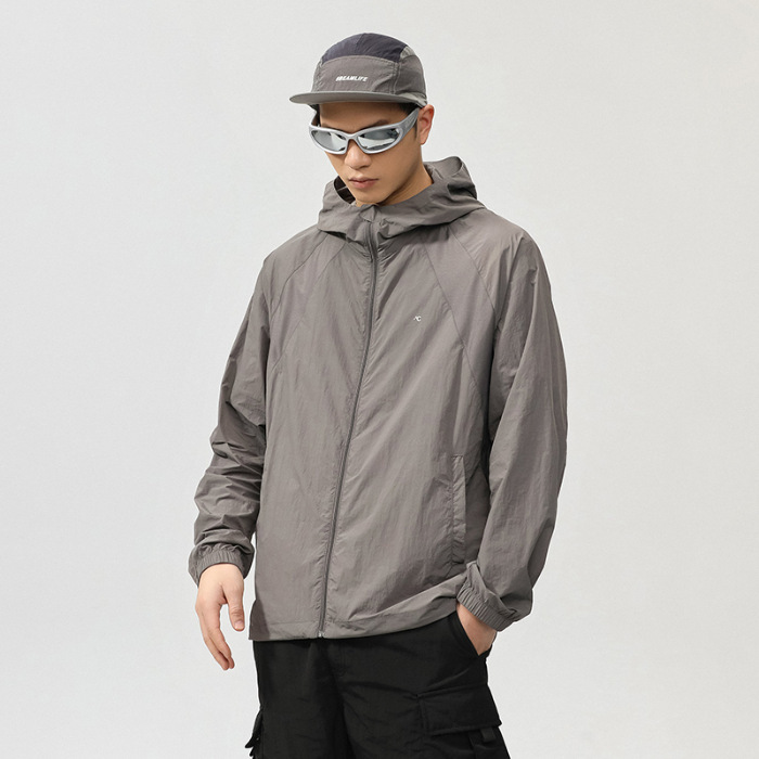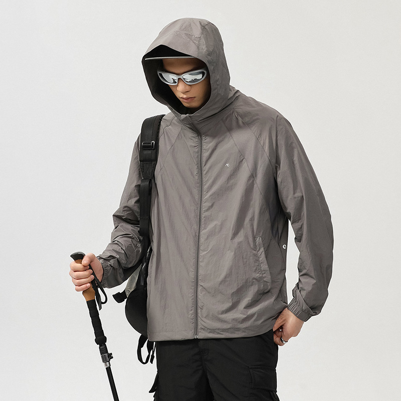 新款户外机能时尚潮三防轻薄UPF50+防晒衣灰色橘色可可咖米白