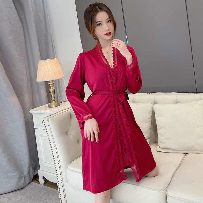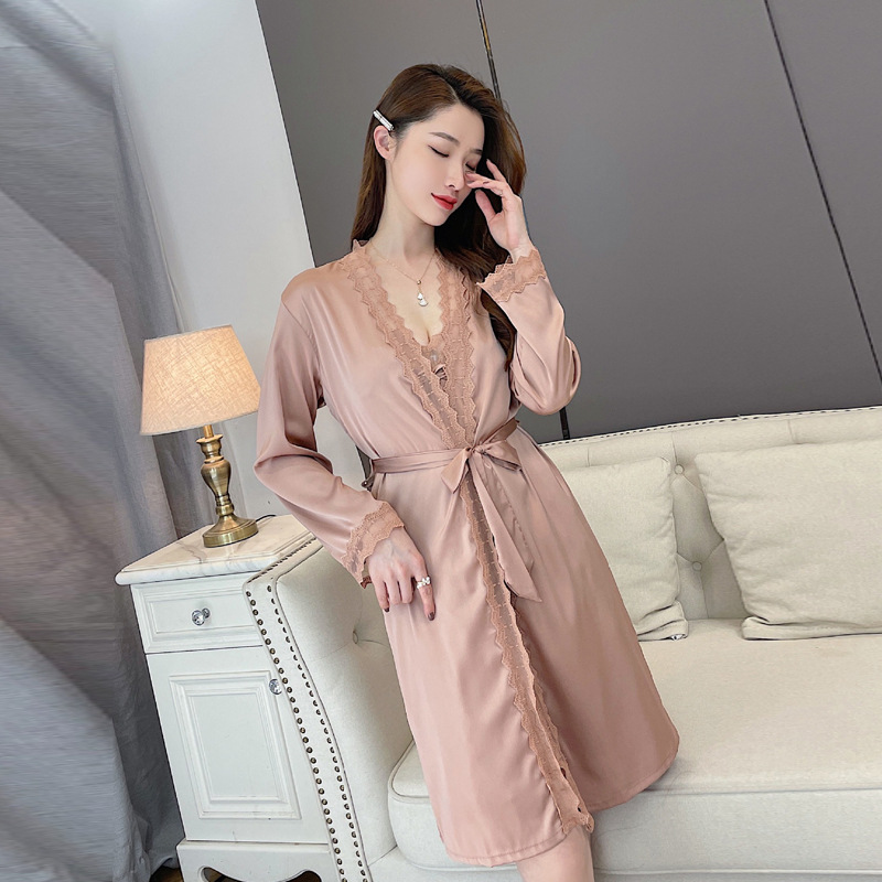新款荷叶边吊带睡裙两件套冰丝带胸垫性感丝绸睡衣夏季家居服