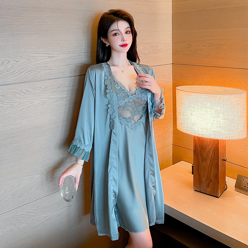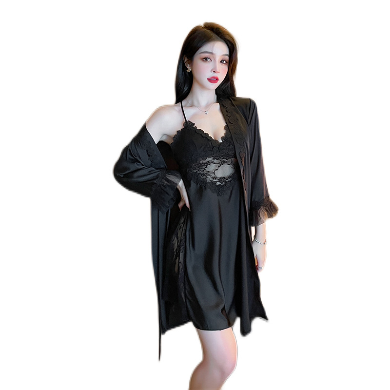 新款女士性感吊带两件套 夏季时尚风薄款冰丝吊带裙蕾丝边睡衣
