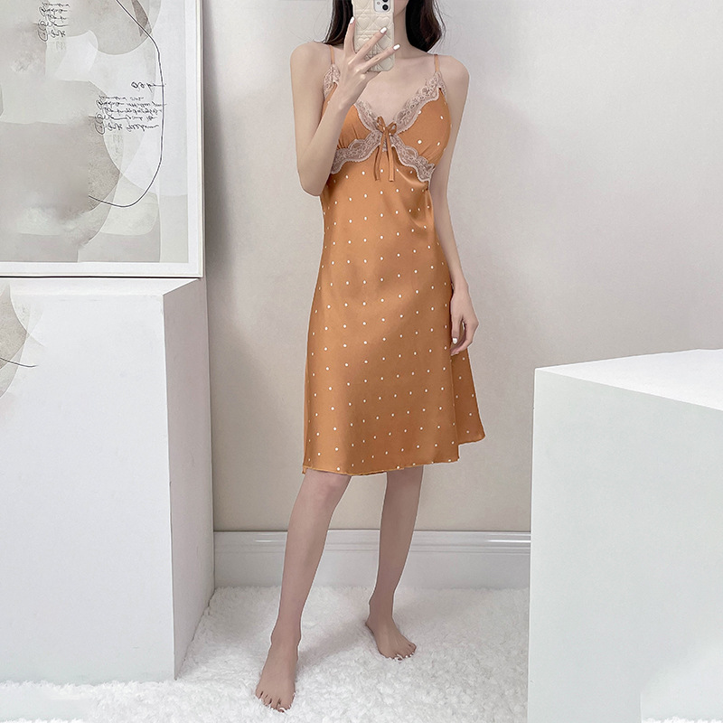 年新款缎面雪纺居家睡衣套装 波点吊带性感透气薄款睡衣套装