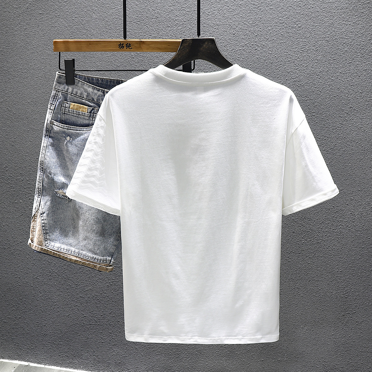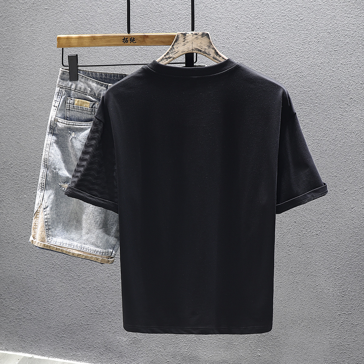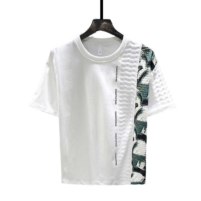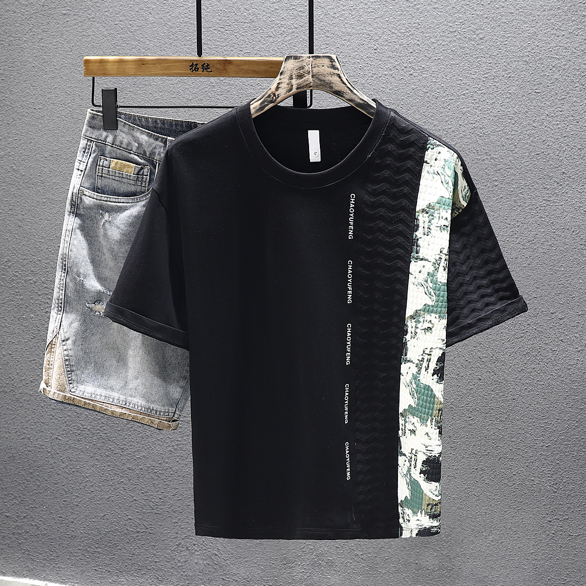 潮流时尚拼接印花短袖T恤男士春季新款棉款宽松休闲百搭体恤