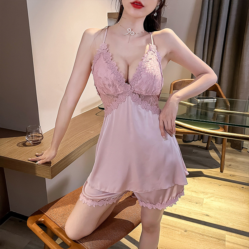 新款秋冬时尚女士家居服睡衣 缎面雪纺吊带超薄睡衣短裤套装