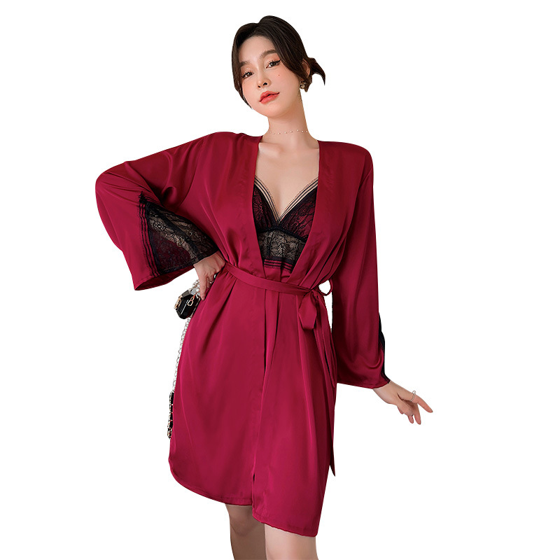 酒红色睡裙睡袍两件套
