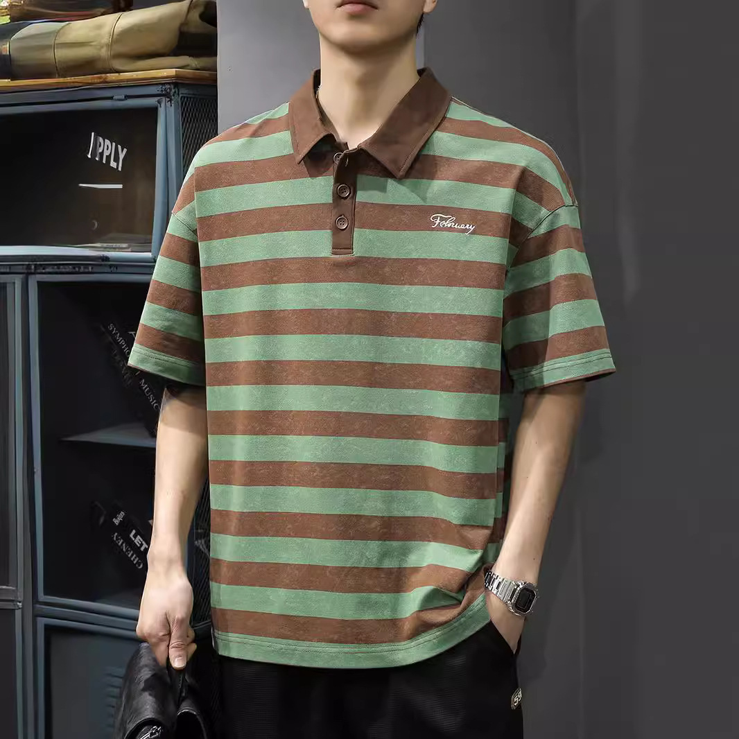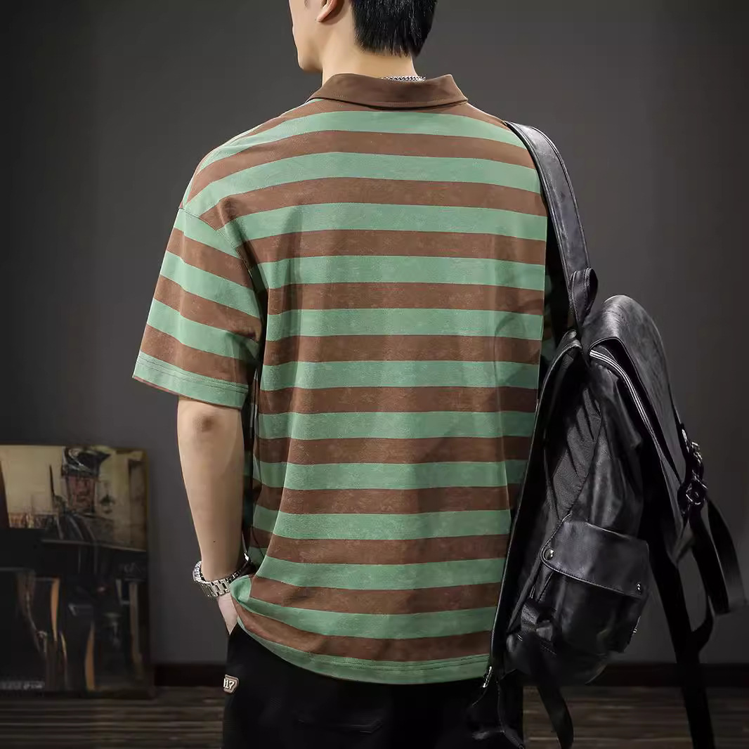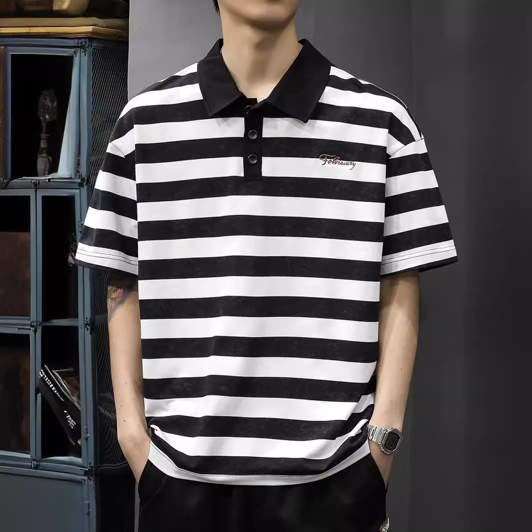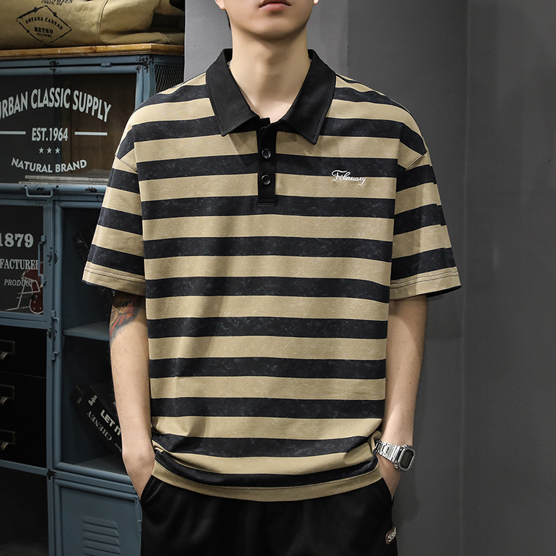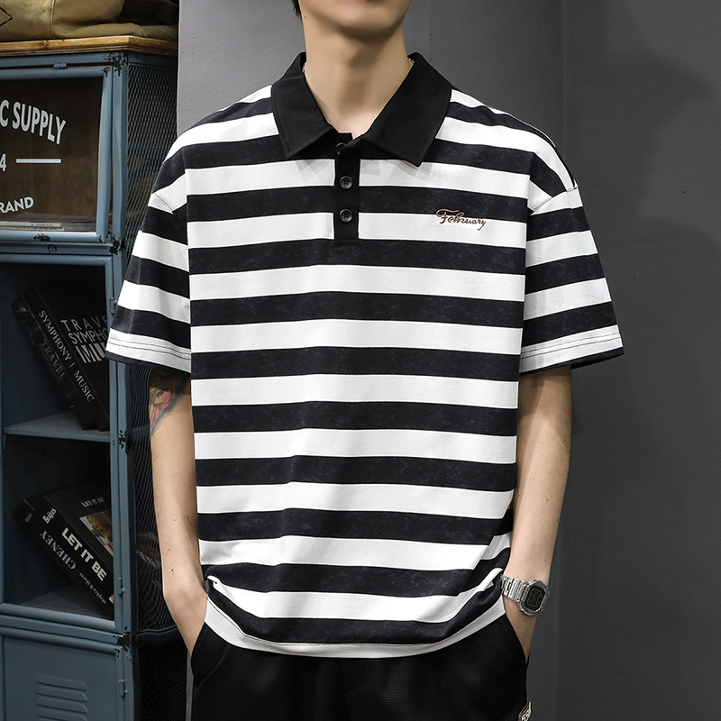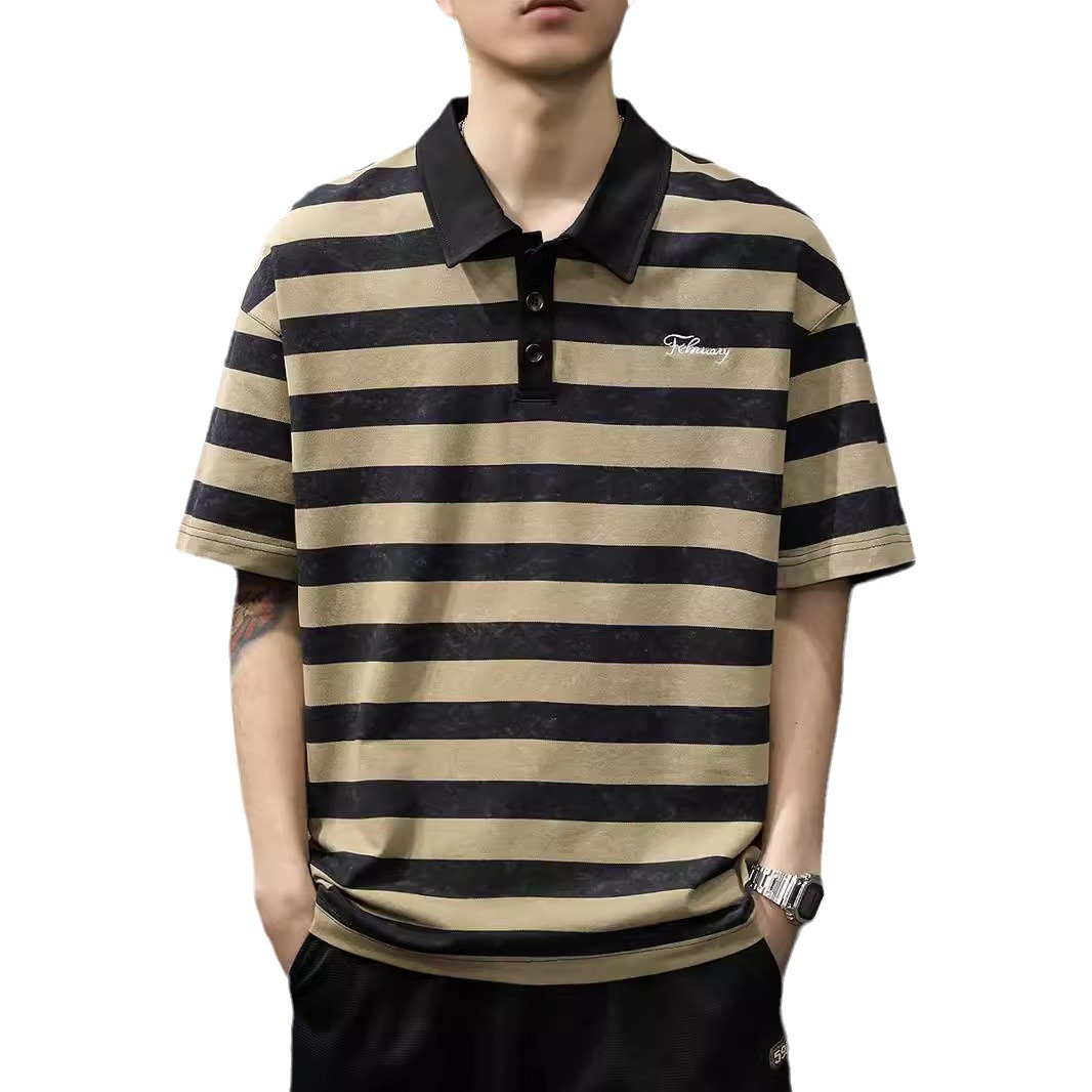 夏季新款条纹短袖Polo衫男宽松大码休闲保罗衫痞帅半袖体恤潮