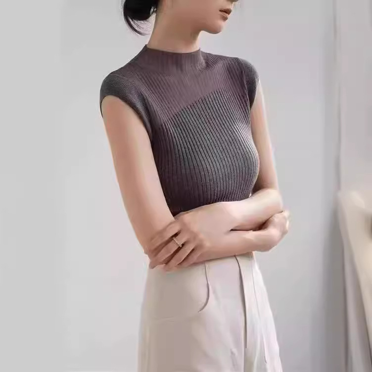 法式灰色短款小飞袖无袖背心针织衫上衣女夏修身正肩短袖冰丝t恤