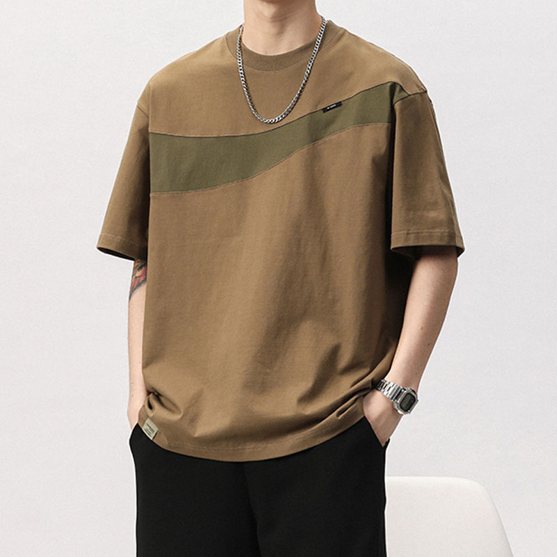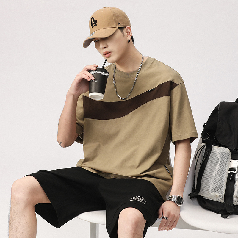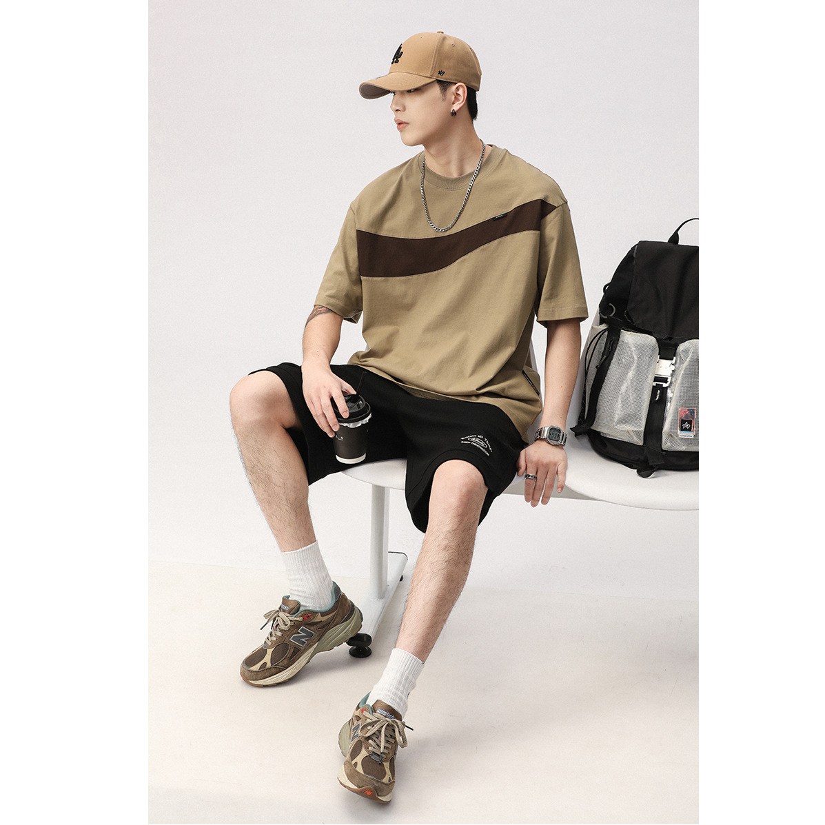美式夏季新款薄款t恤短袖宽松男大码胖子纯棉潮流圆领高街上衣潮