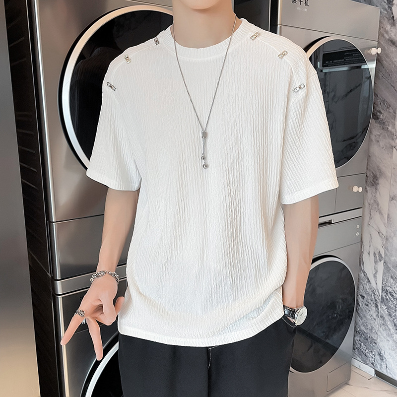 爆款小清新白色夏装潮男短袖T恤 时尚休闲圆领五分袖百搭男装