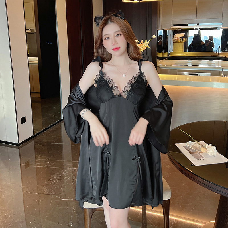 吊带两件套夏季新款薄款冰丝吊带裙蕾丝带胸垫露背性感居家睡衣女