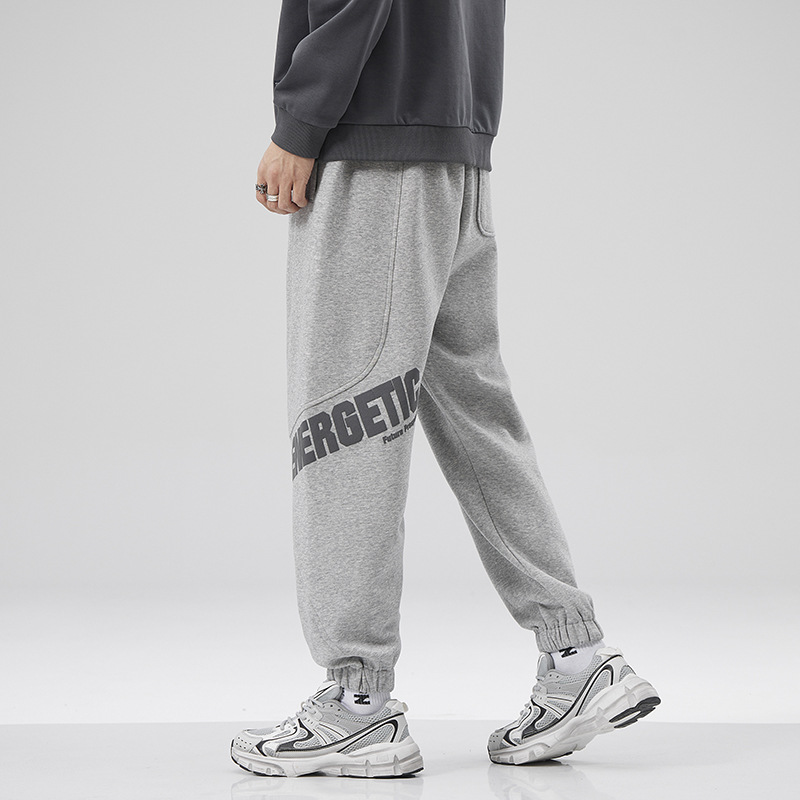秋季新款印花字母灰色休闲裤男宽松大码卫裤重磅系带束脚运动裤潮