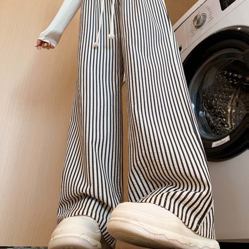 美式复古条纹裤子新款春夏慵懒风小个子宽松显瘦阔腿拖地裤休闲裤