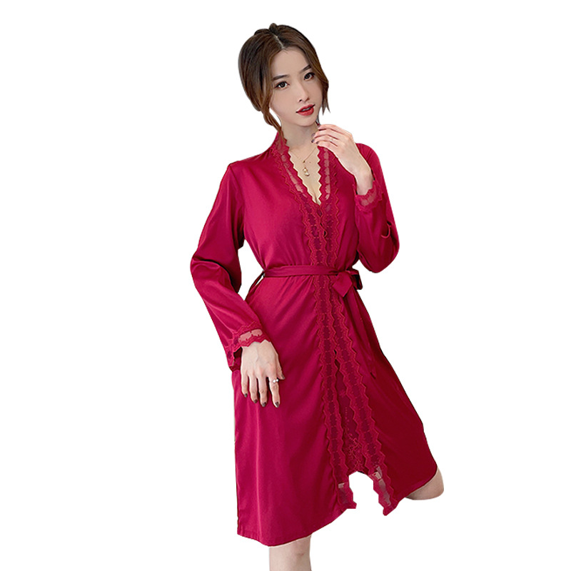 春夏季新款女士睡衣 性感居家服套装女 冰丝带胸垫吊带睡袍套装