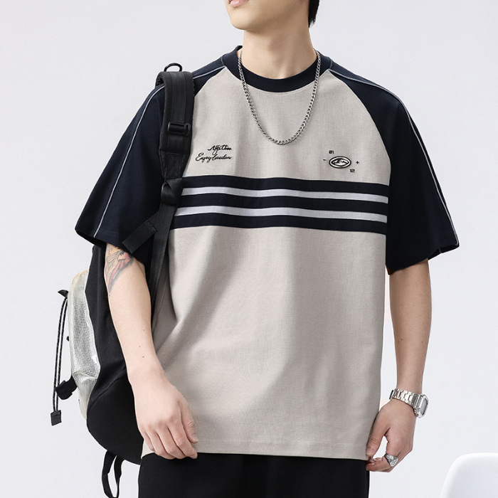 重磅230G棉质T恤男士夏灰蓝色青春流行宽松型现货整单青年短袖