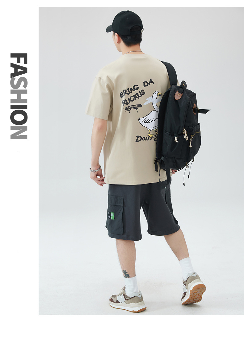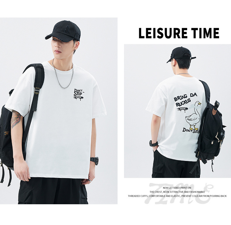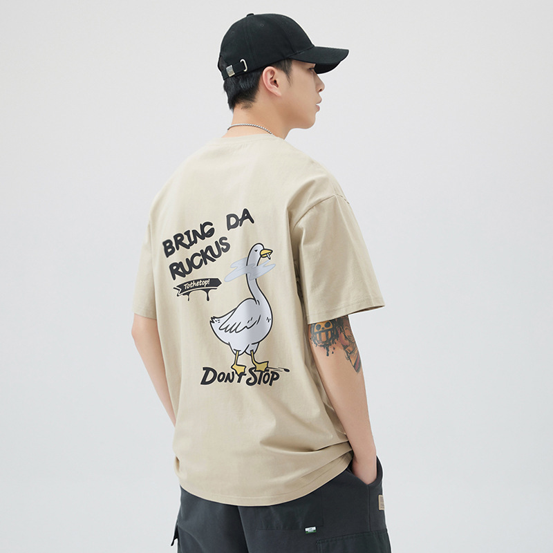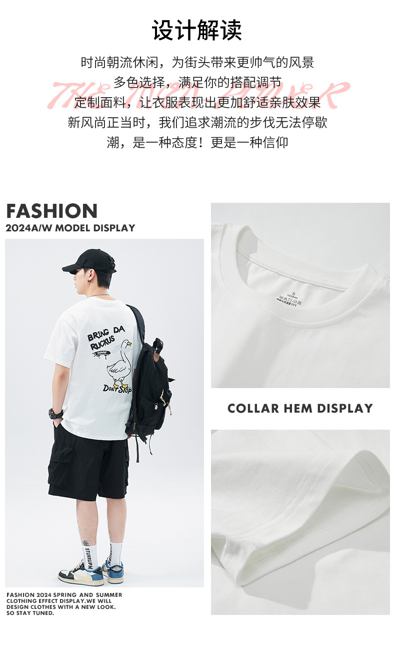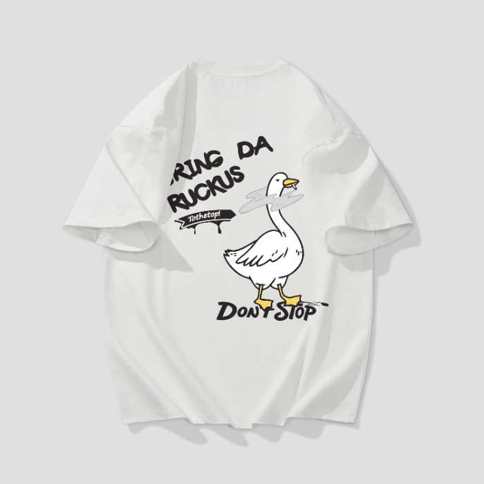 个性手机大白鹅印花短袖T恤男夏季新款美式青少年宽松半袖上衣男