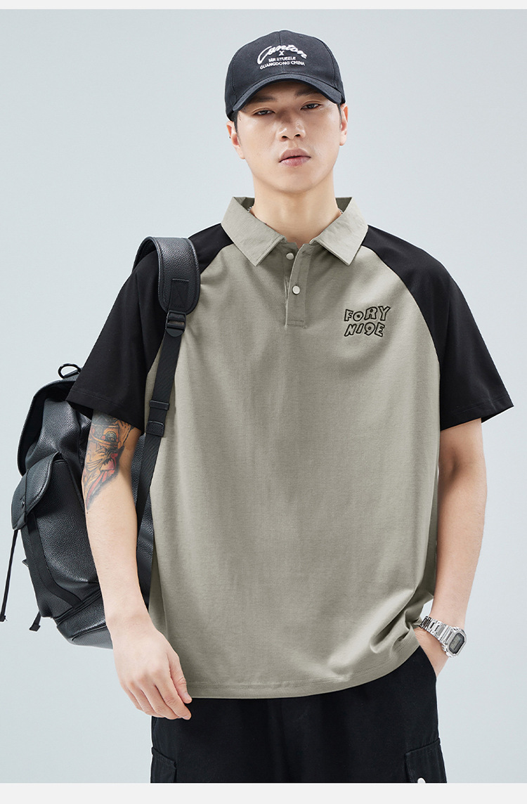 青年潮牌大码美式百搭宽松polo衫男短袖翻领T恤夏季插肩袖