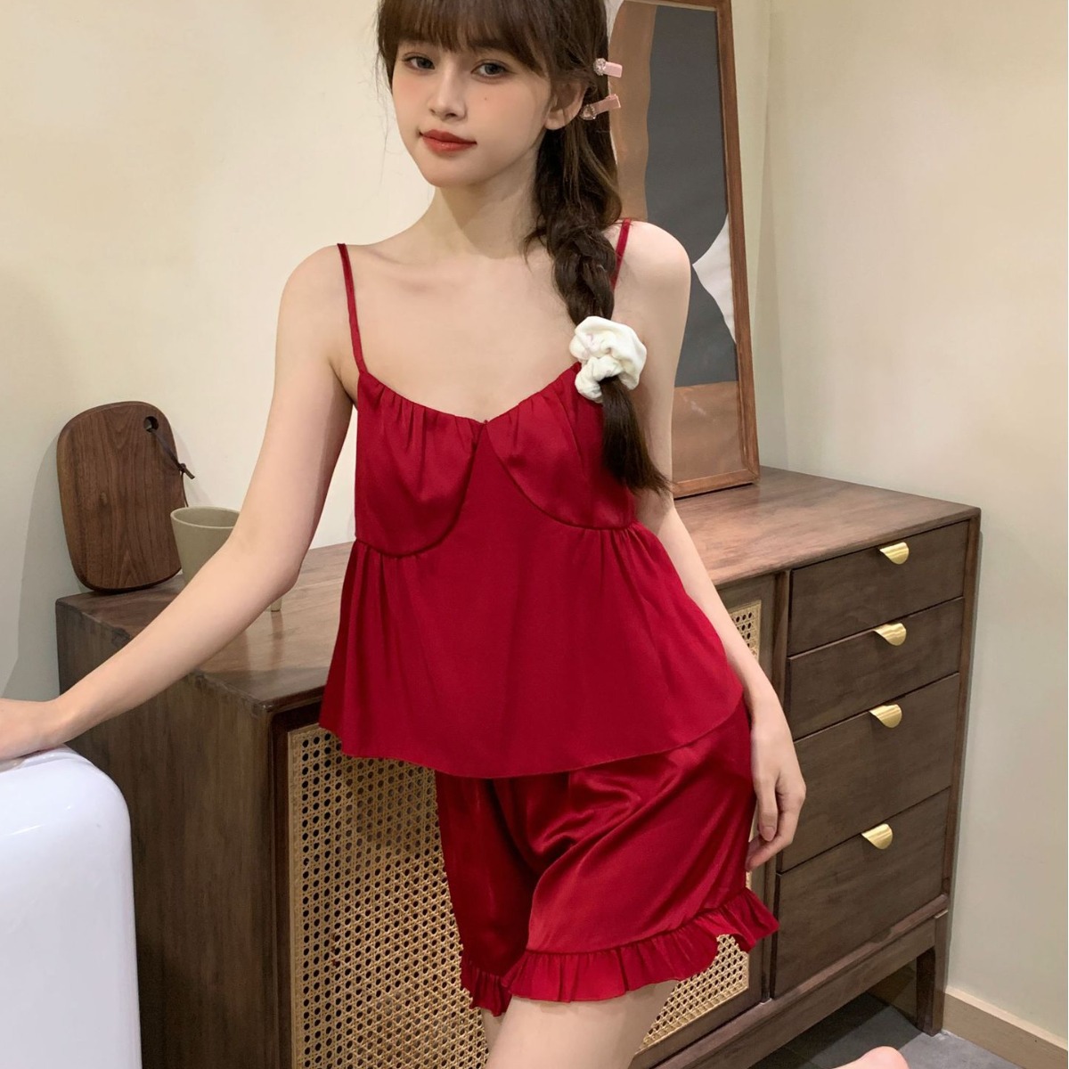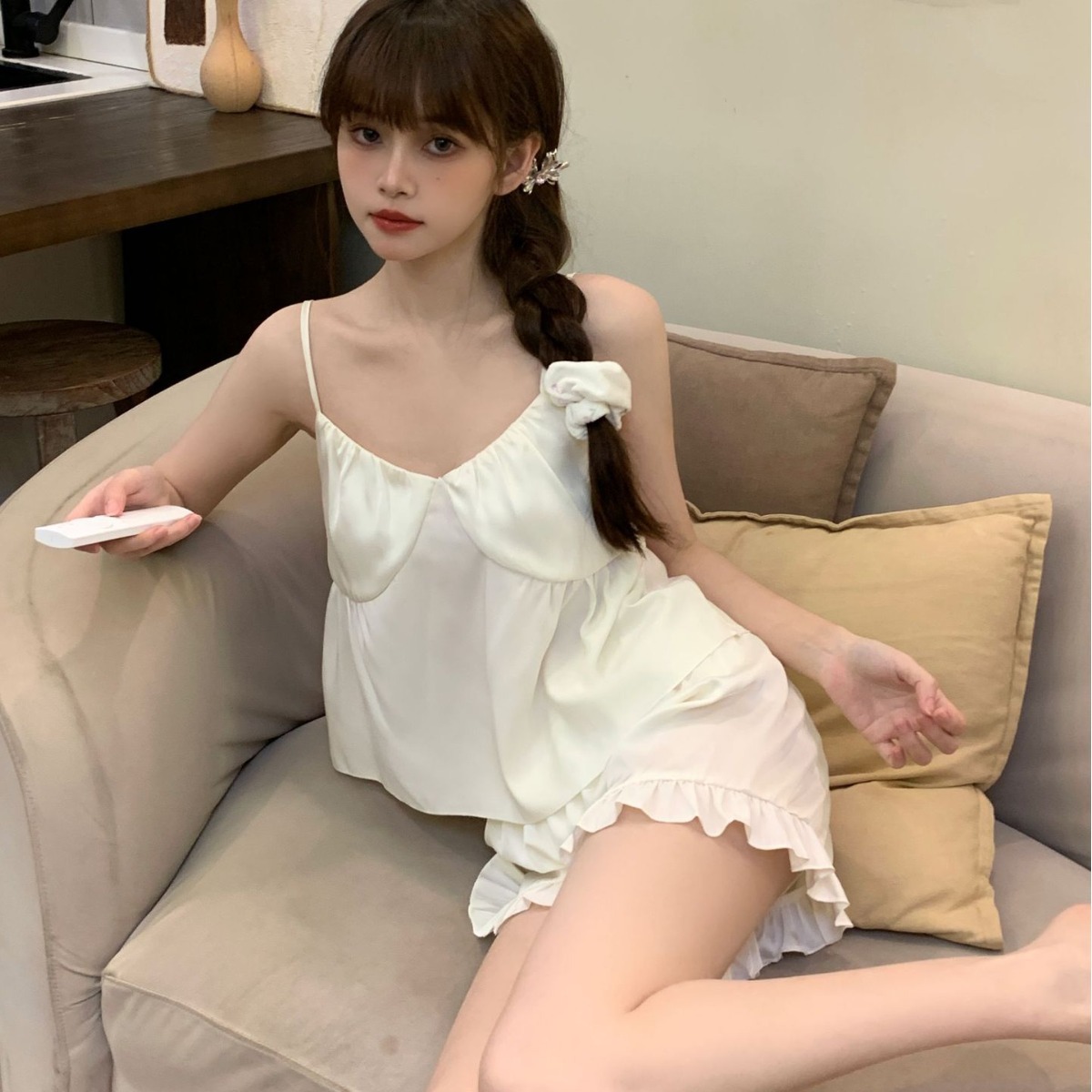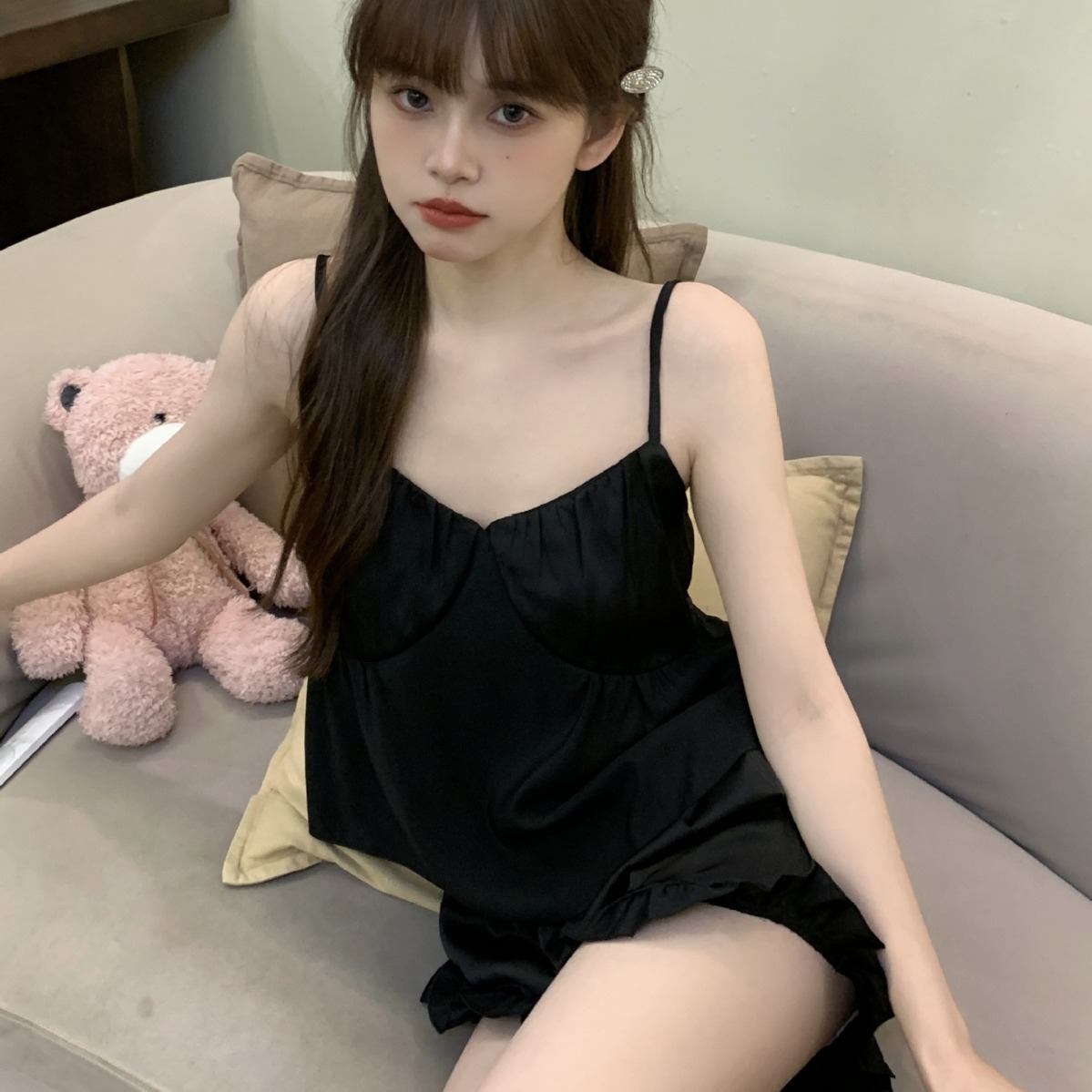 24新款冰丝睡衣女夏季少女纯欲吊带短裤家居服套装睡衣女粉嫩性感