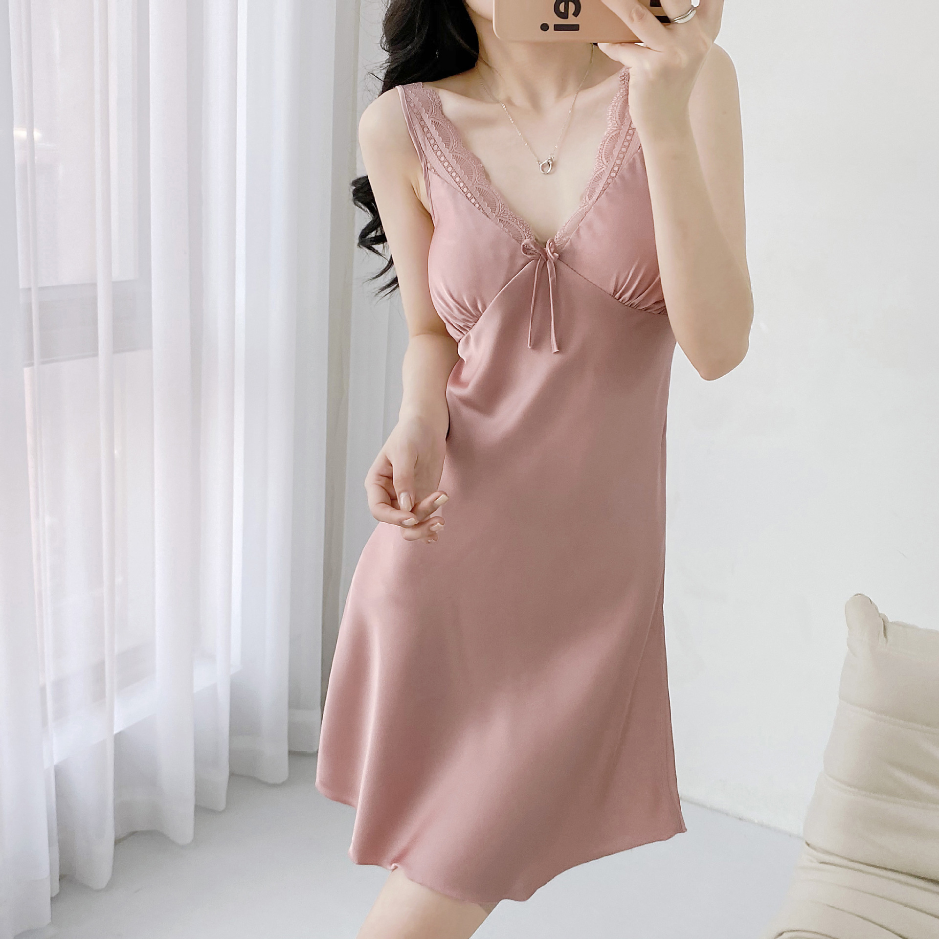 性感睡裙女士夏季吊带冰丝绸睡衣ins少女纯欲睡衣带胸垫24年新款