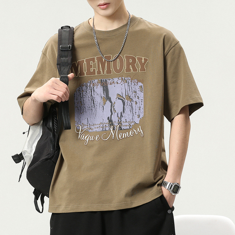 夏季美式重磅潮牌复古短袖T恤男纯棉宽松大码休闲圆领印花上衣ins