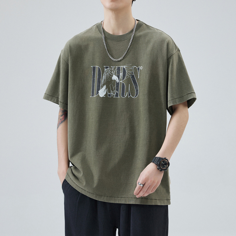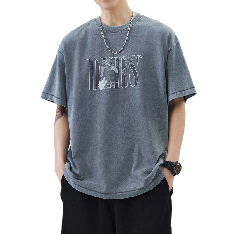 美式复古怀旧黑色水洗重磅短袖T恤男宽松大码纯棉半袖体t恤潮牌